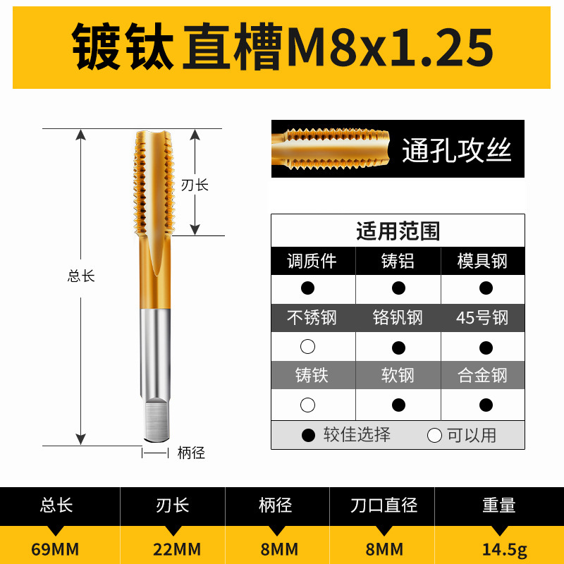 • 코발트 함유 티타늄 도금 스트레이트 홈 기계 탭 M22