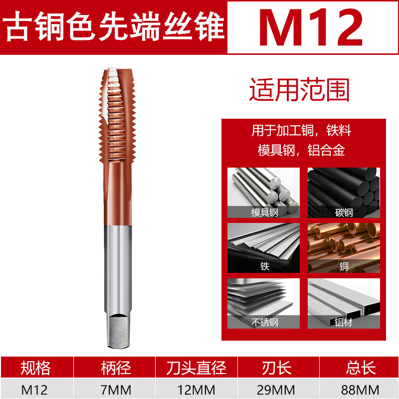 • 코발트 함유 티타늄 도금 팁 기계 탭 M12