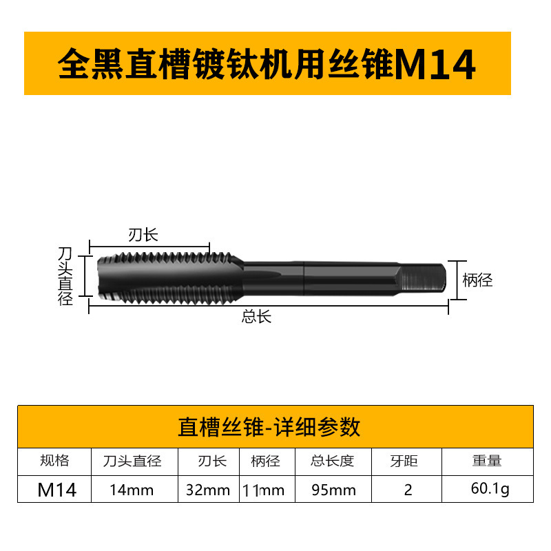 • 코발트 함유 티타늄 도금 스트레이트 홈 기계 탭 M14