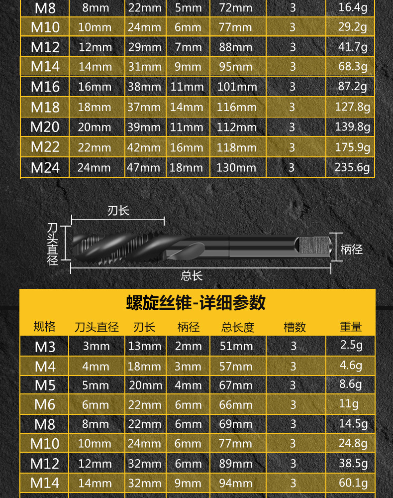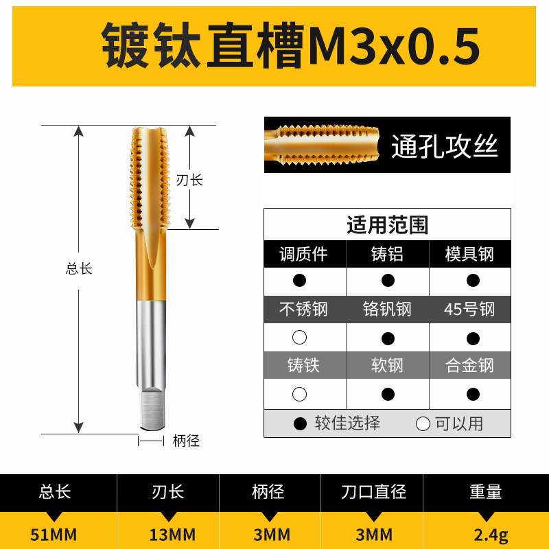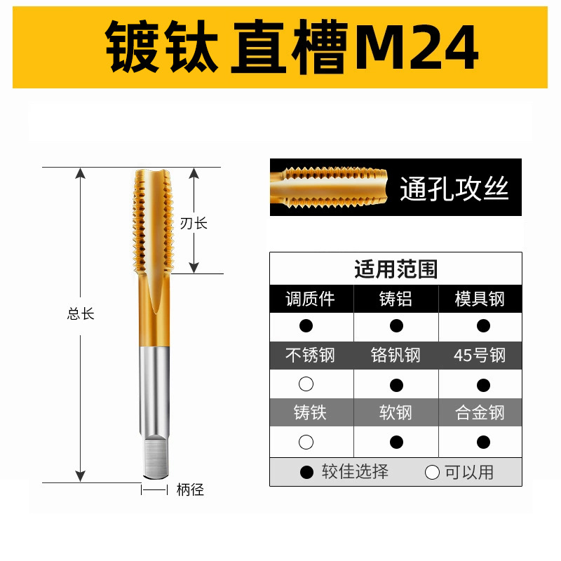 • 코발트 함유 티타늄 도금 스트레이트 홈 기계 탭 M24