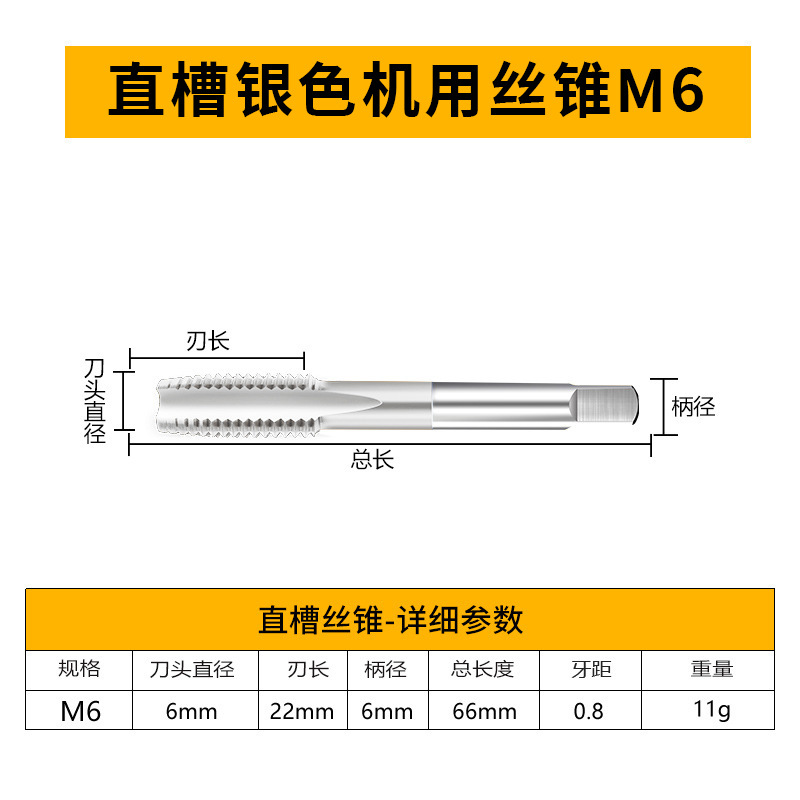 • 코발트 함유 티타늄 도금 스트레이트 홈 기계 탭 M6
