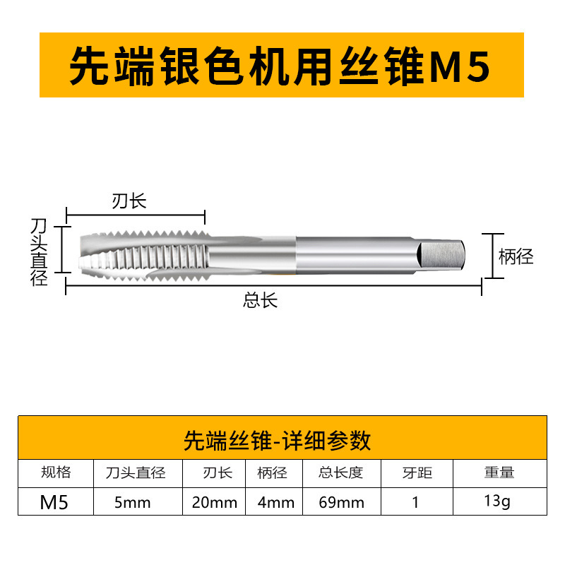 • 코발트 함유 티타늄 도금 팁 기계 탭 M5