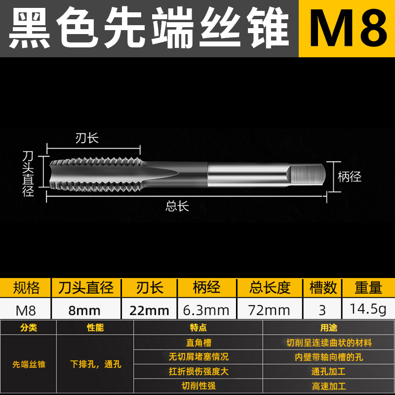 • 코발트 함유 블랙 팁 기계 탭 M8