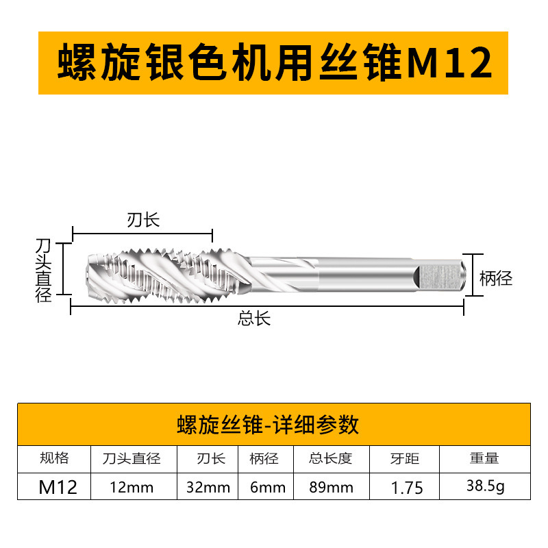 • 코발트 함유 티타늄 도금 나선형 기계 탭 M12