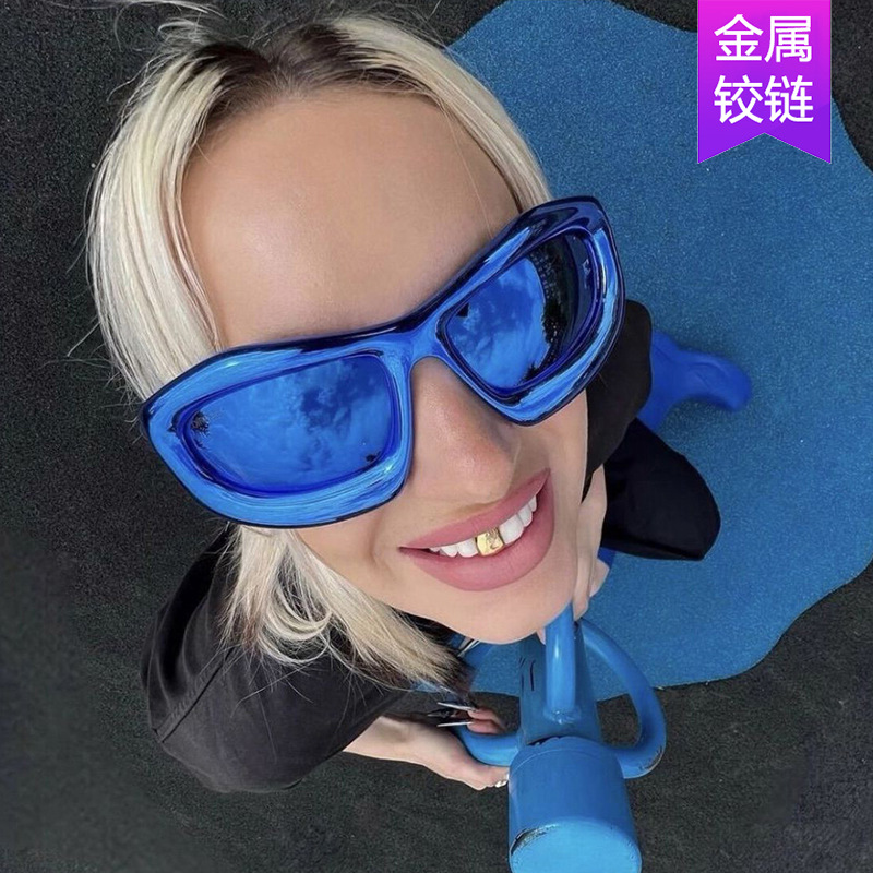 과장된 대형 프레임 Y2K 선글라스 패션 유럽과 미국 크로스 보더 라이딩 선글라스 야외 선글라스 성격 오목한 모양
