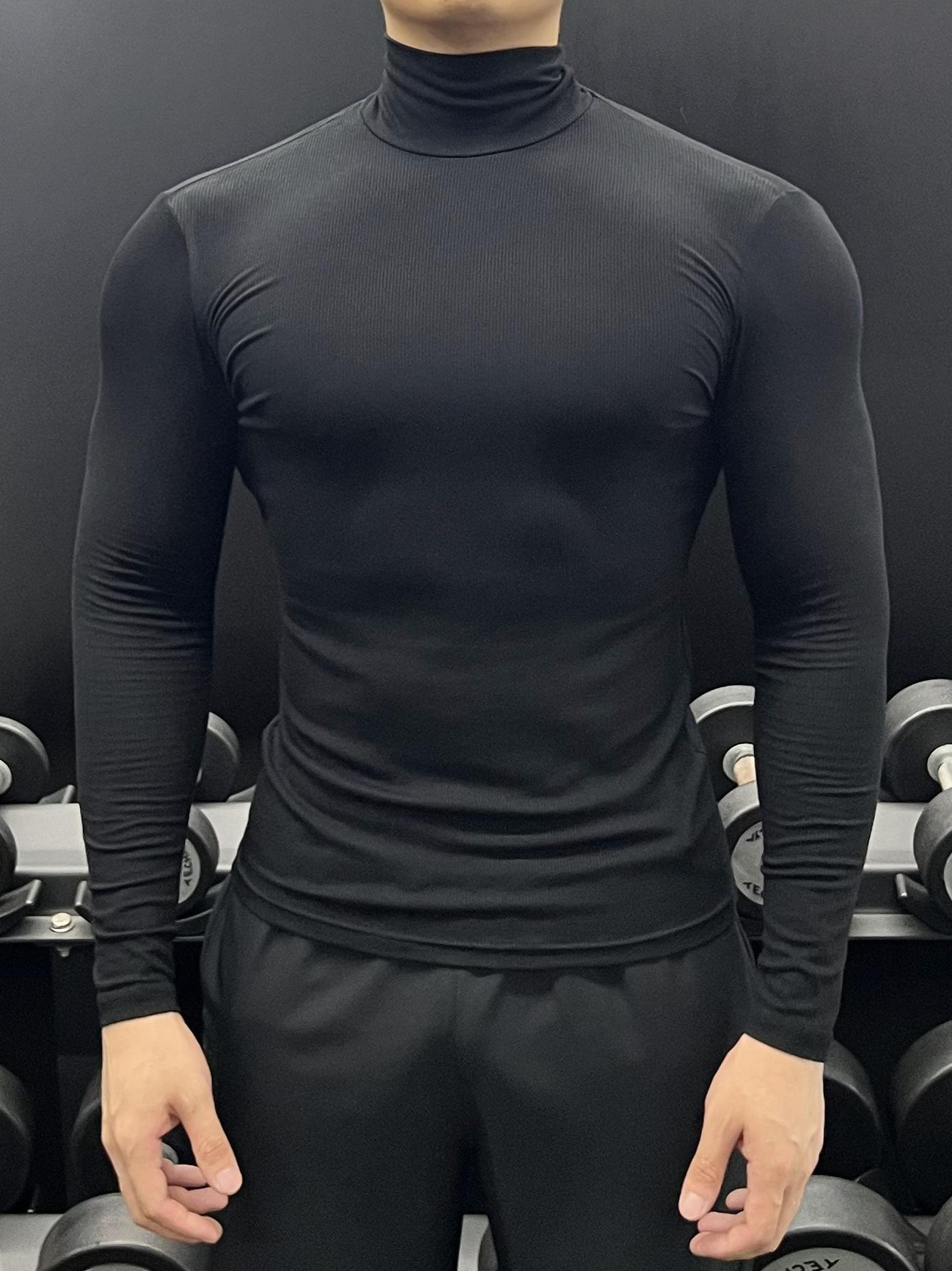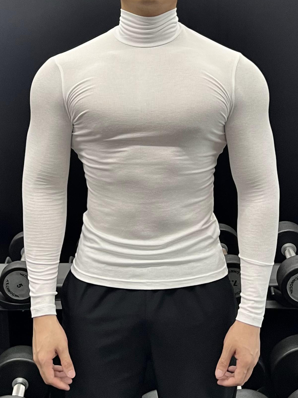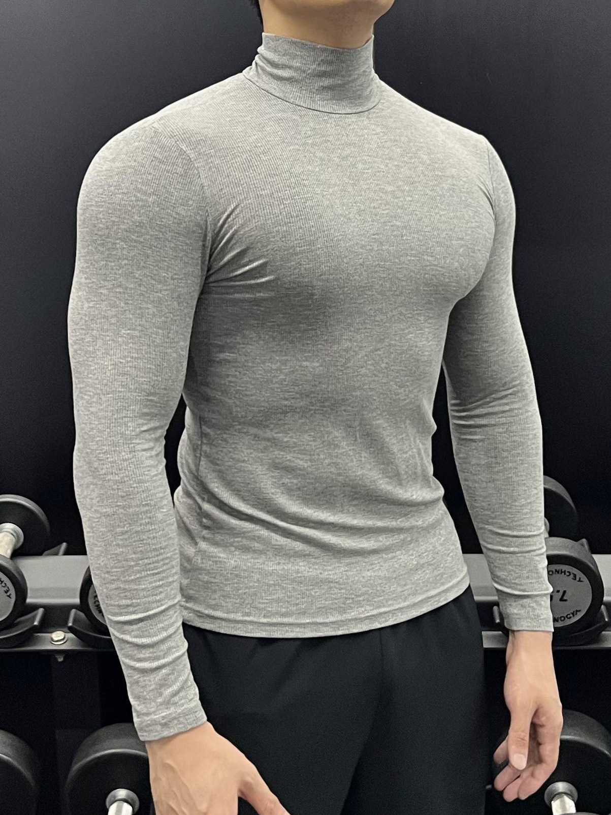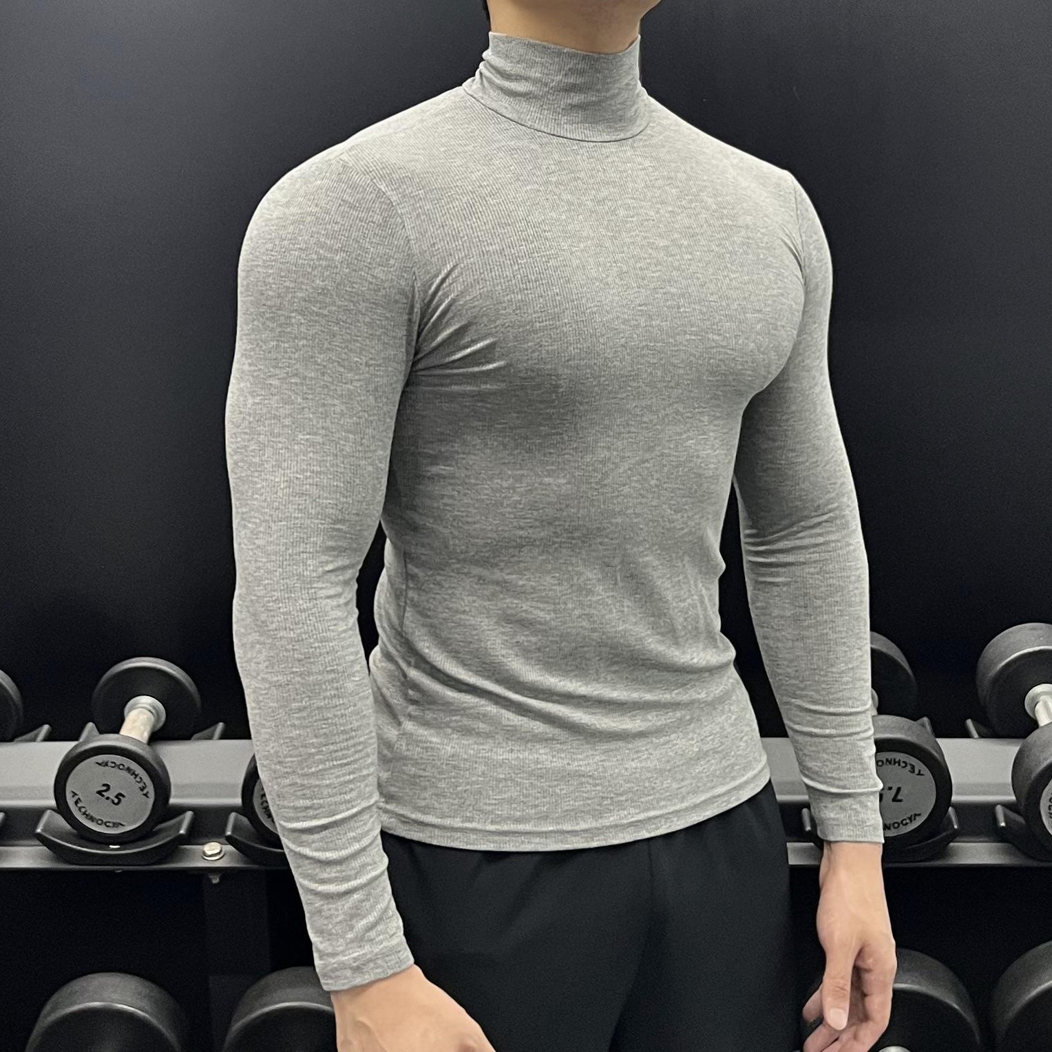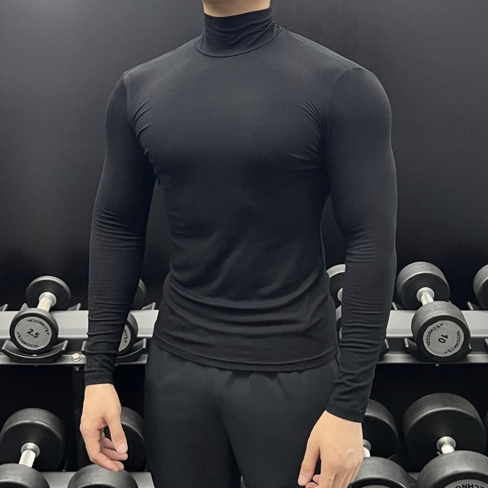 하이 칼라 긴 소매 티셔츠 남성용 근육 피트니스 트레이닝 꽉 끼는 스포츠 고탄력 속건 캐주얼 베이스 셔츠 탑스토어 가기