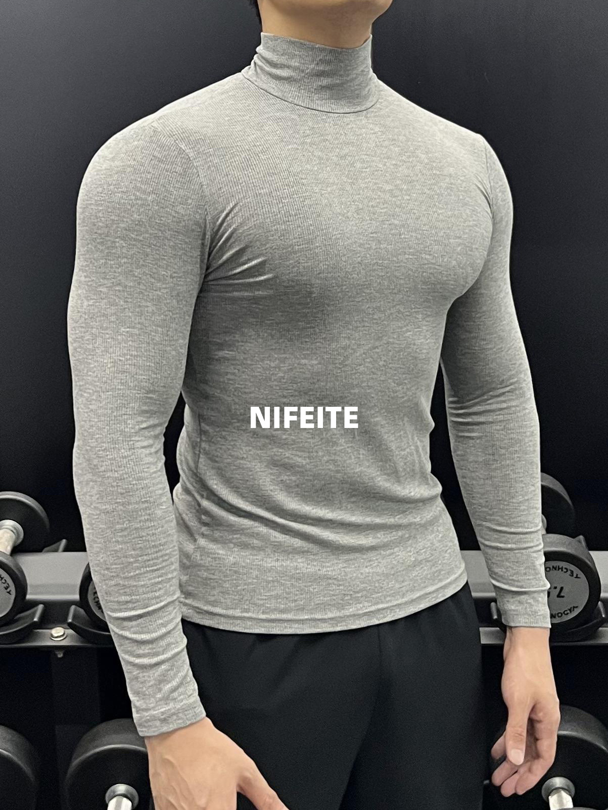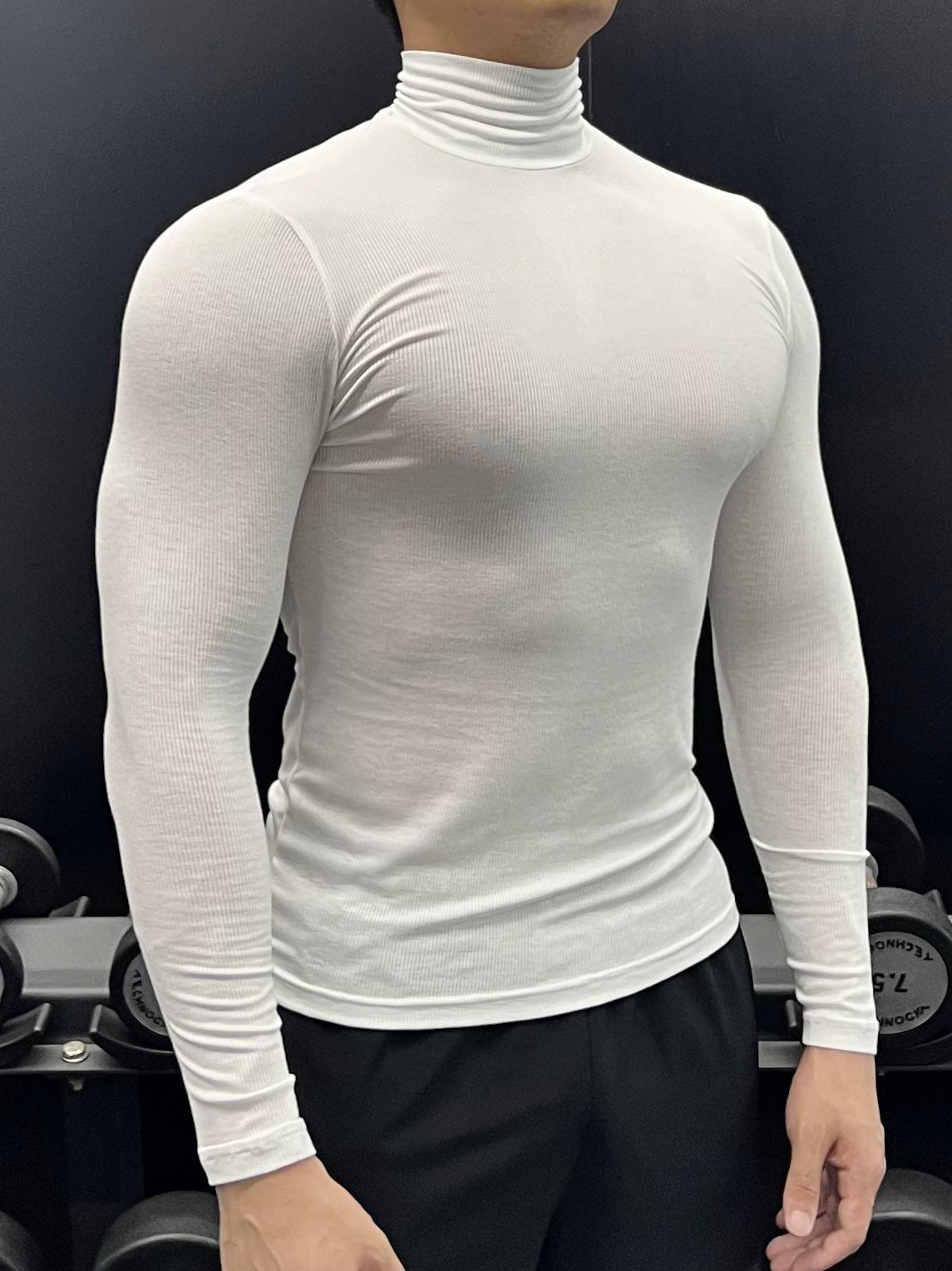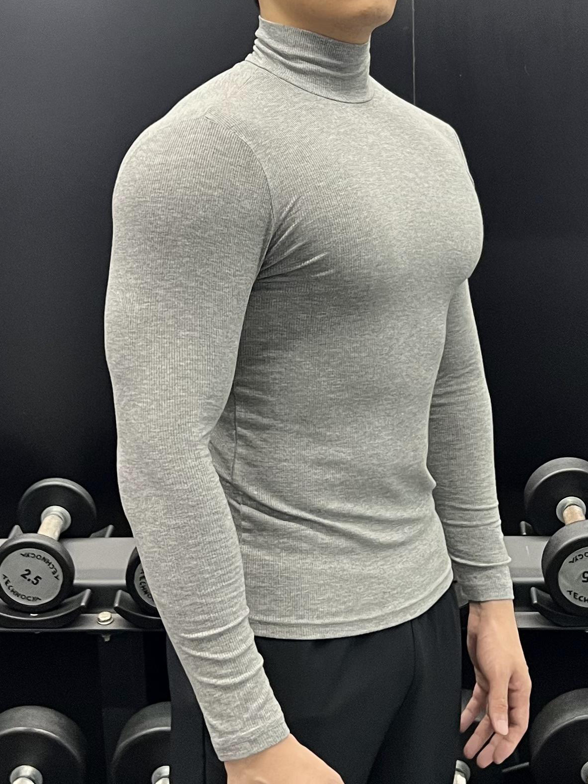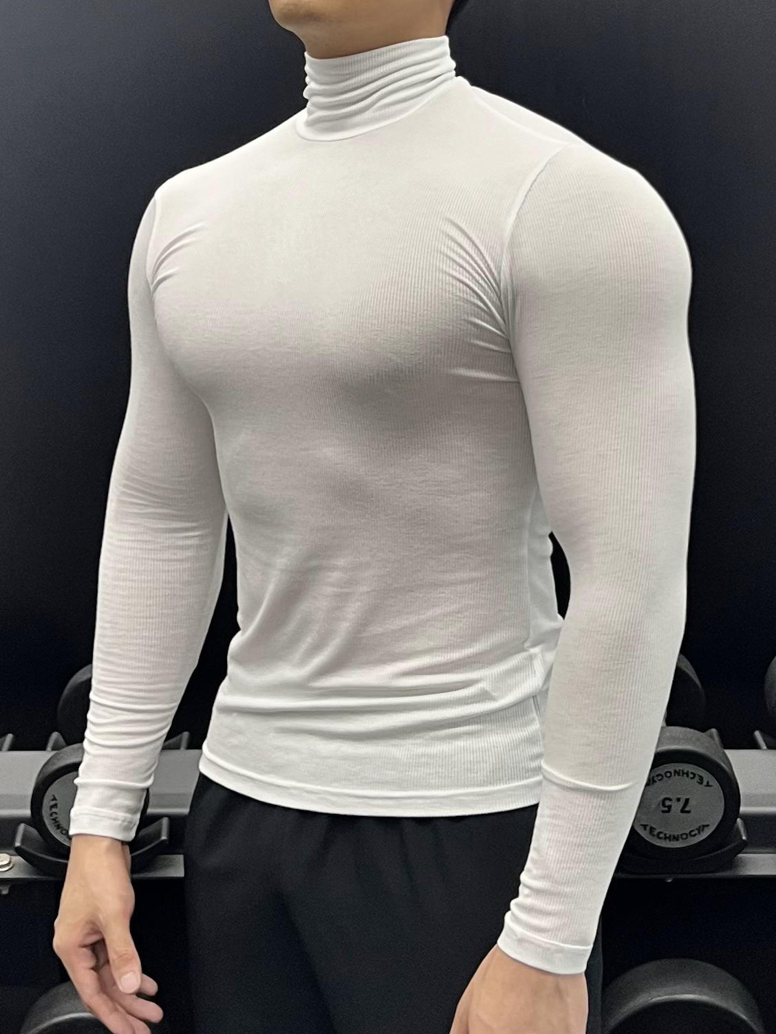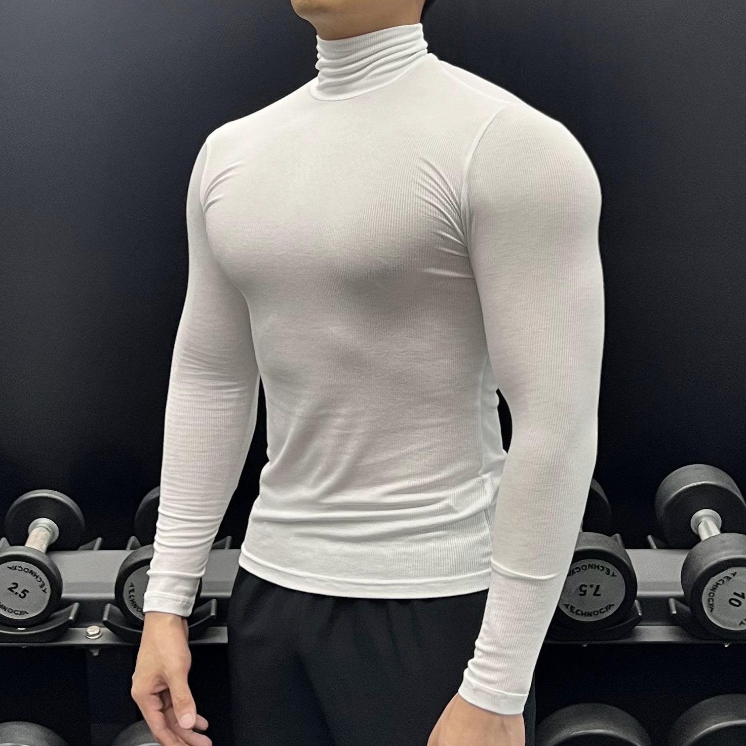 하이 칼라 긴 소매 티셔츠 남성용 근육 피트니스 트레이닝 꽉 끼는 스포츠 고탄력 속건 캐주얼 베이스 셔츠 탑스토어 가기