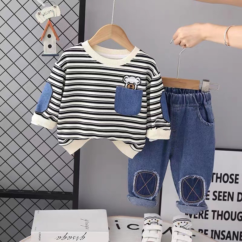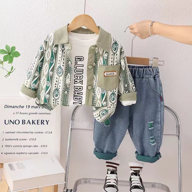 남자 아기 봄 가을 가디건 쓰리피스 세트 2023 새로운 잘 생긴 어린이 캐주얼 가을 옷 한국 아동복스토어 가기