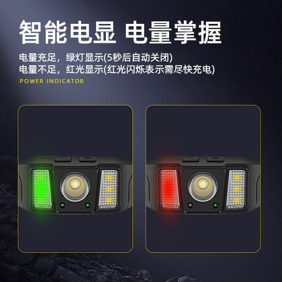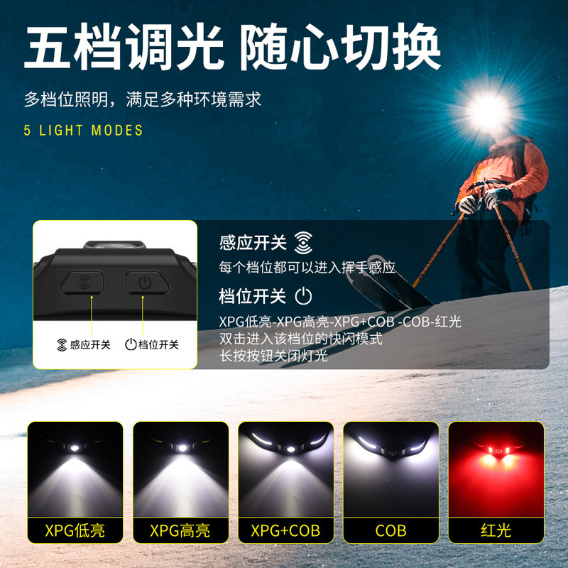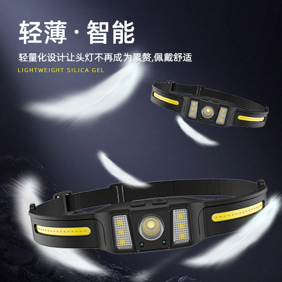 야외용 스마트 센서 헤드램프, 긴 배터리 수명의 실리콘 헤드램프, 가볍고 강한 빛의 초고휘도 헤드램프, 머리 장착형 광부용 램프