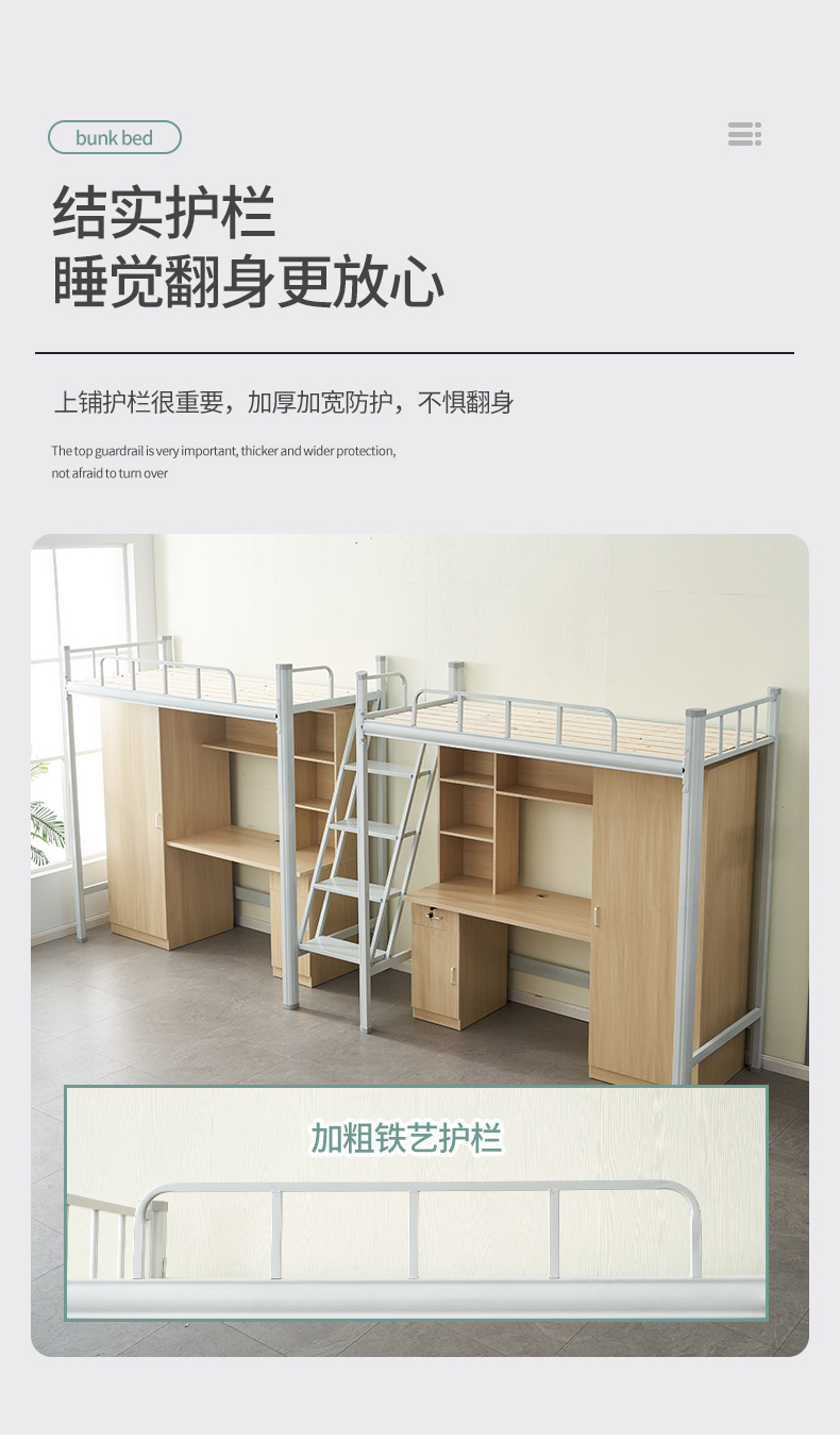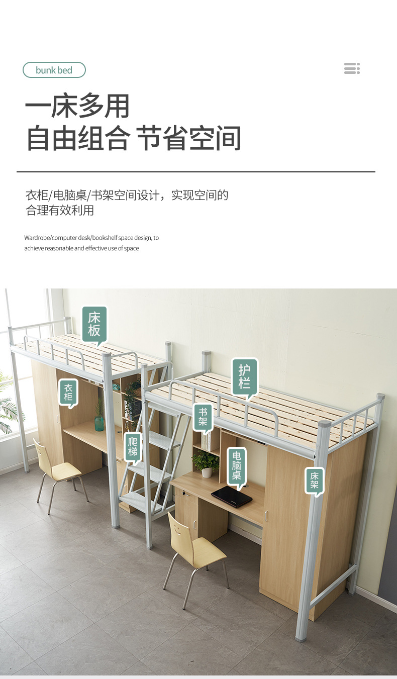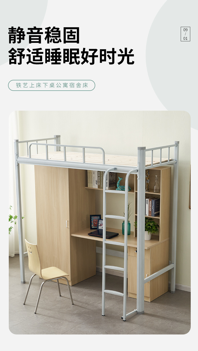 맞춤형 침대 하부 테이블 콤비네이션 침대 싱글 침대 아파트 학생 직원 기숙사 고가 침대 책장 통합 철제 침대