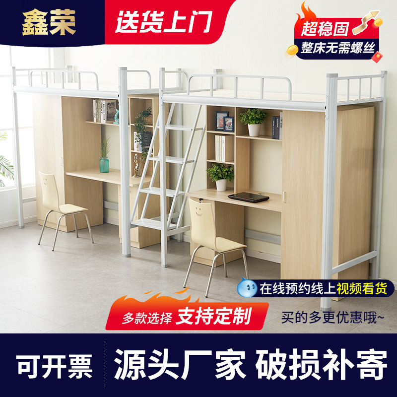 맞춤형 침대 하부 테이블 콤비네이션 침대 싱글 침대 아파트 학생 직원 기숙사 고가 침대 책장 통합 철제 침대스토어 가기