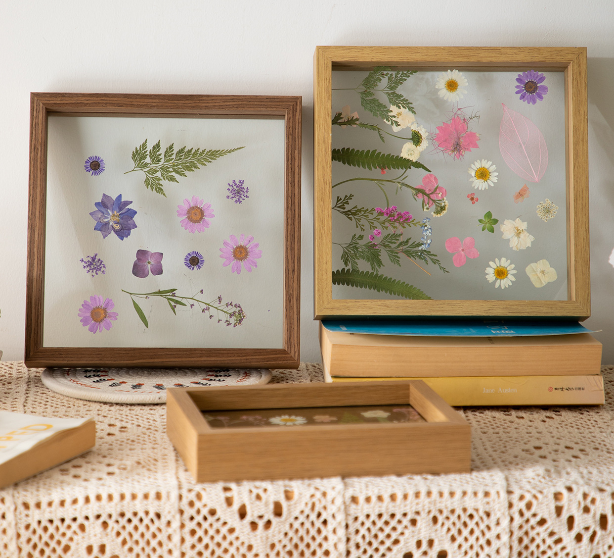 유럽 스타일 크리 에이 티브 양각 사진 프레임 투명 유리 테이블 수제 DIY 잎 식물 표본 나무 액자 장식품스토어 가기
