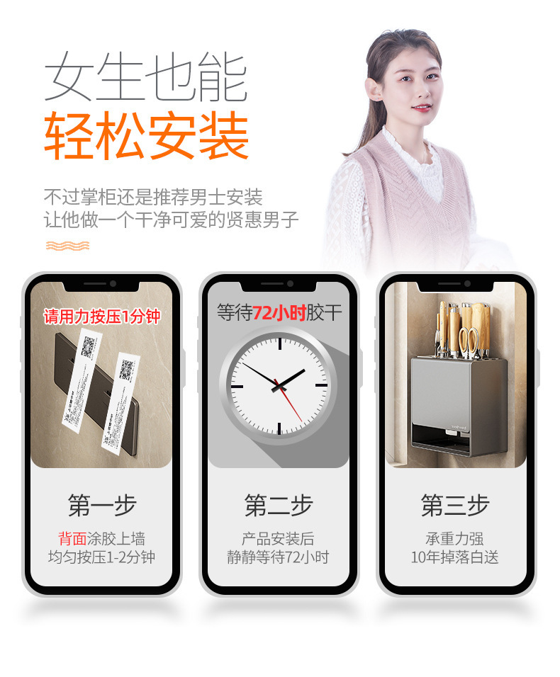공장 공급 주방 나이프 랙 보관 랙 가정용 조리대 젓가락 바구니 벽걸이 형 나이프 랙 다기능 스토리지 통합스토어 가기