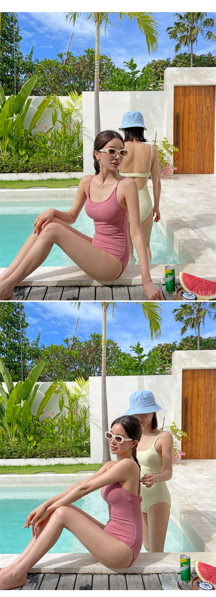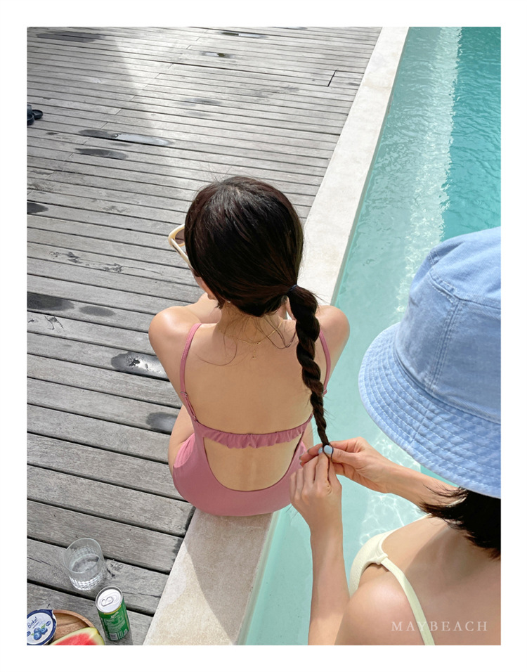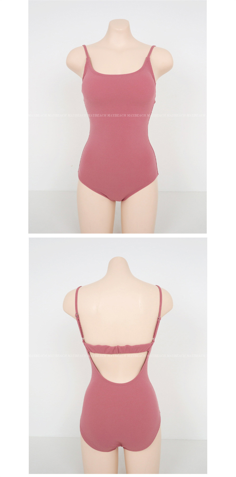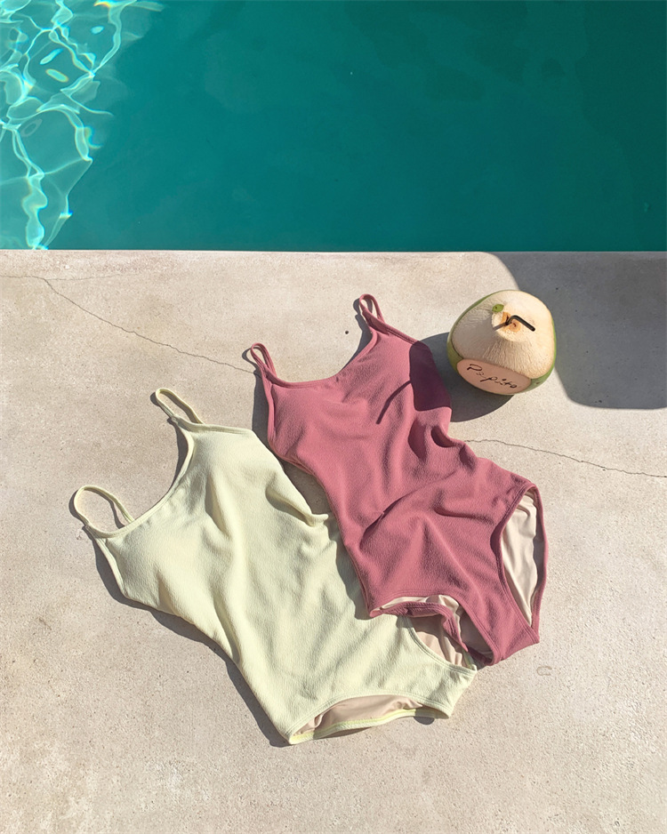 2023 새로운 심플한 솔리드 컬러 스타일 소녀의 등이없는 스트랩 원피스 온천 휴가 수영복 여성용스토어 가기