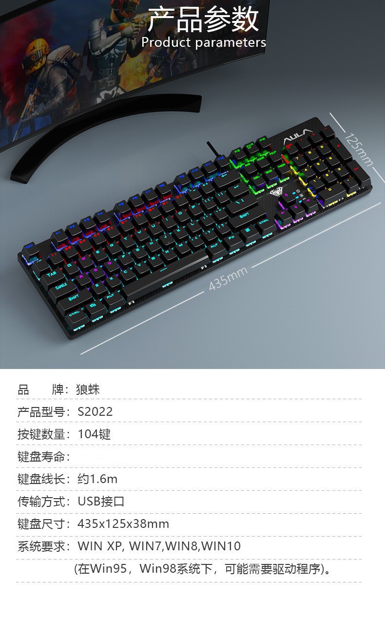 타란툴라 S2022 혼합 라이트 그린 샤프트 기계식 키보드 usb 인터넷 카페 특별 전자 대회 치킨 cclol 특별 키보드