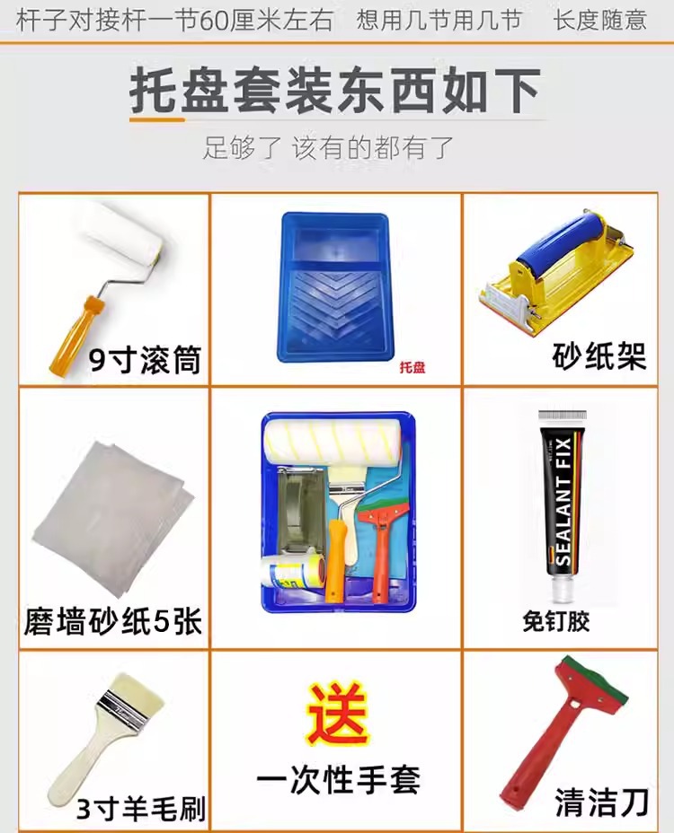 • 1.2 m 막대 + 9 인치 순수한 흰색 브러시 + 트레이 세트 [장식 유물] * 사양 없음 * 화학 섬유