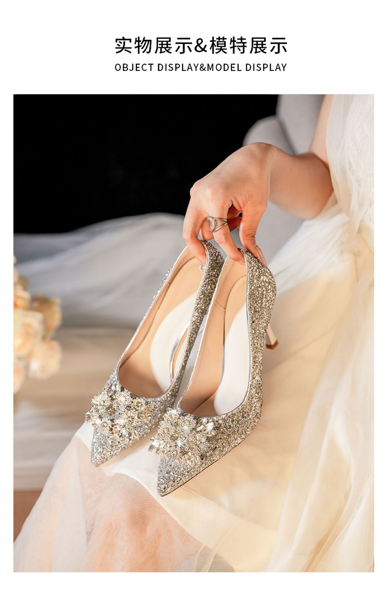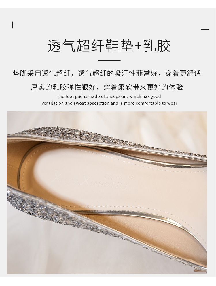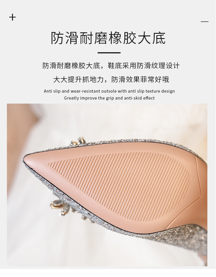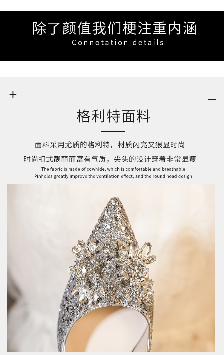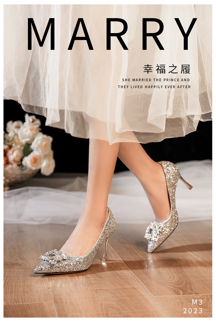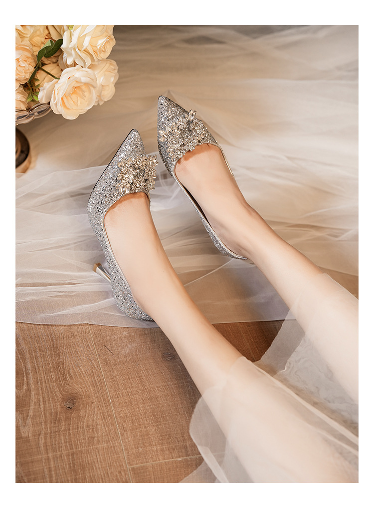 황금 웨딩 슈즈 Xiuhe 웨딩 원피스 2 착용 신부 신발 고급 라인 석 프랑스 하이힐 여성 사이즈 들러리 신발스토어 가기