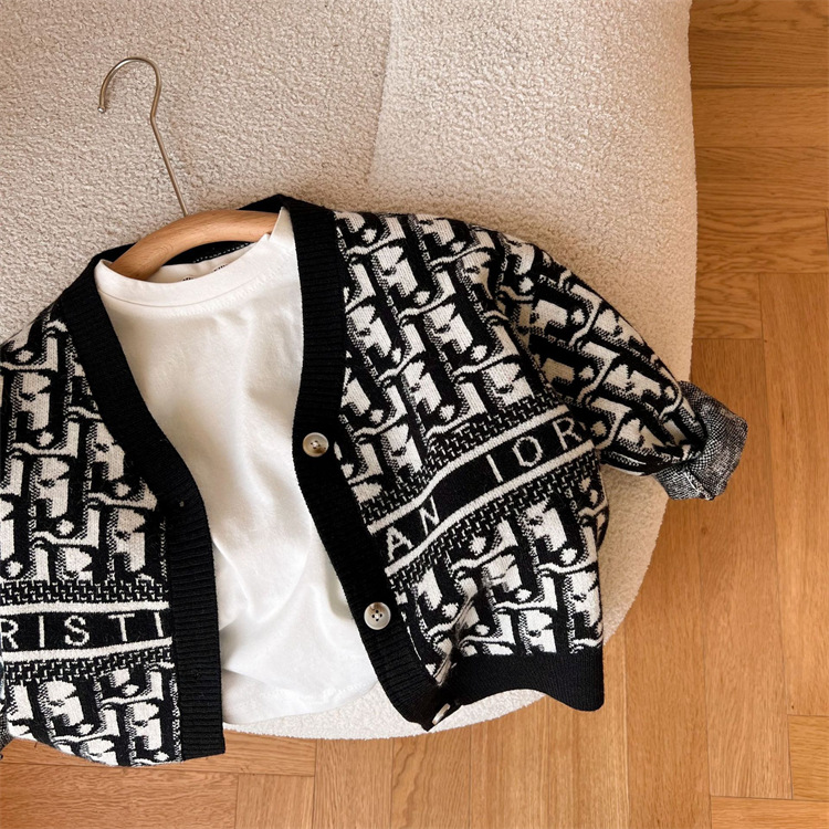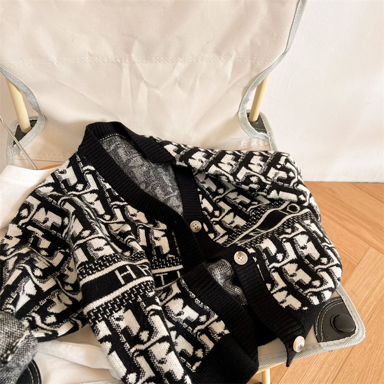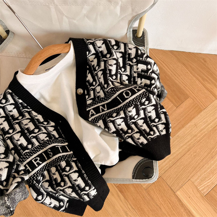 2024 새로운 가을, 겨울 흑백 소년 소녀 니트 가디건 스웨터 유행 및 다재다능한 아동용상의스토어 가기