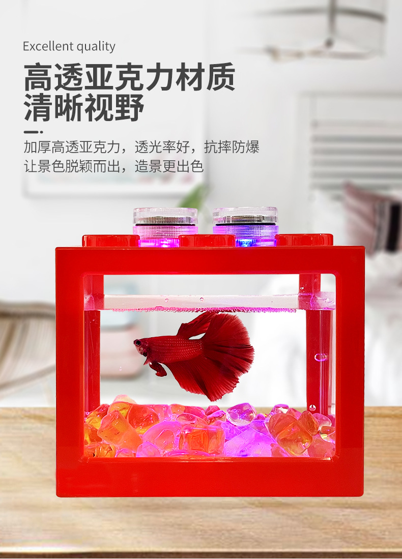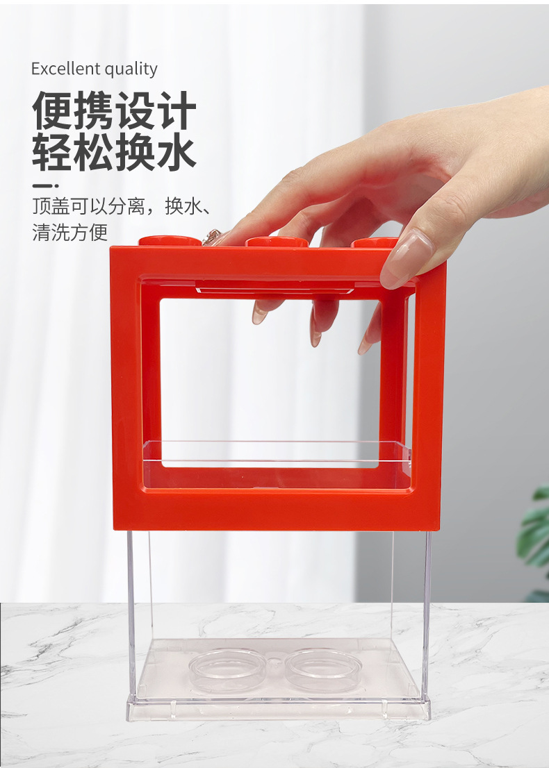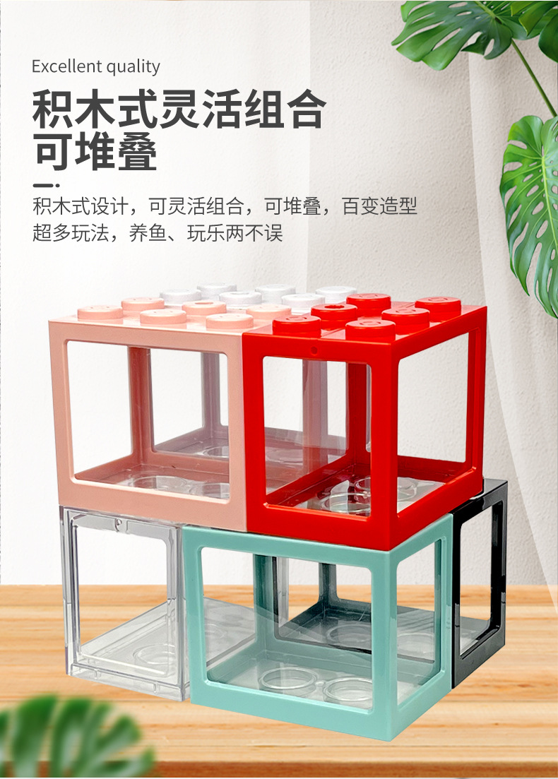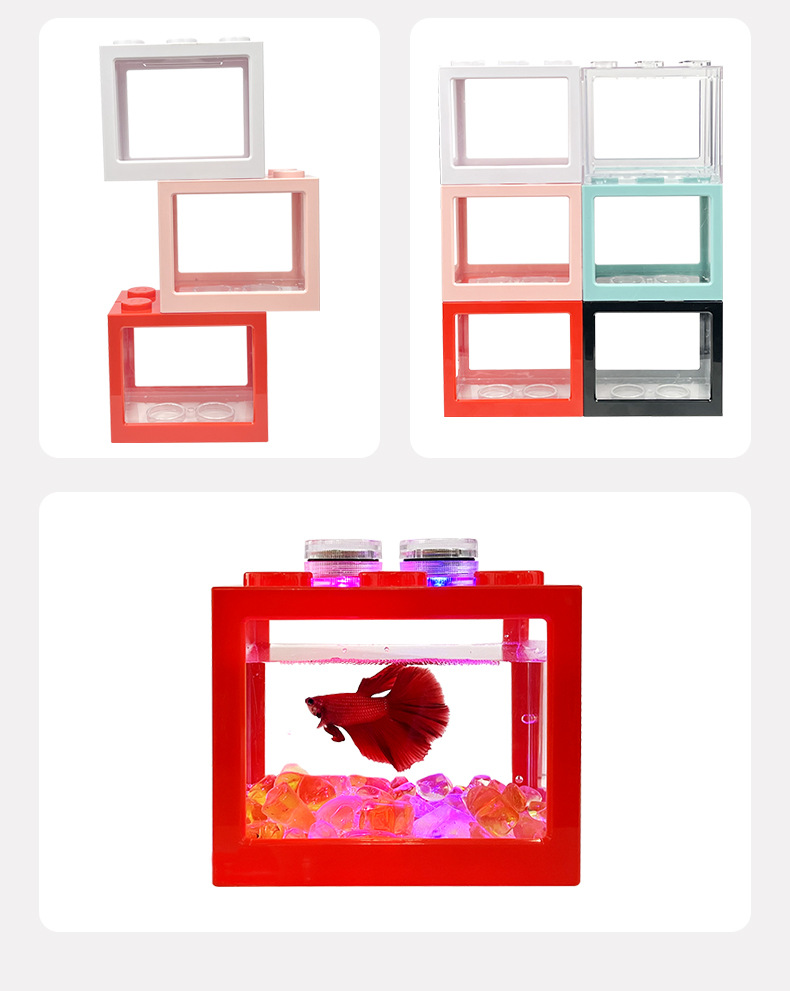 물고기 관상용 어항 등반 애완동물 귀여운 리빙 마이크로 풍경 어항 탁상 어항과 싸우는 창조적인 겹쳐진 빌딩 블록 2 세대