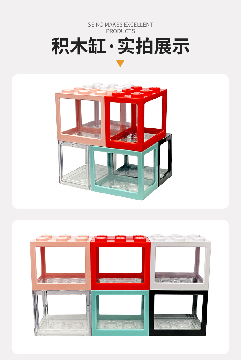 물고기 관상용 어항 등반 애완동물 귀여운 리빙 마이크로 풍경 어항 탁상 어항과 싸우는 창조적인 겹쳐진 빌딩 블록 2 세대스토어 가기