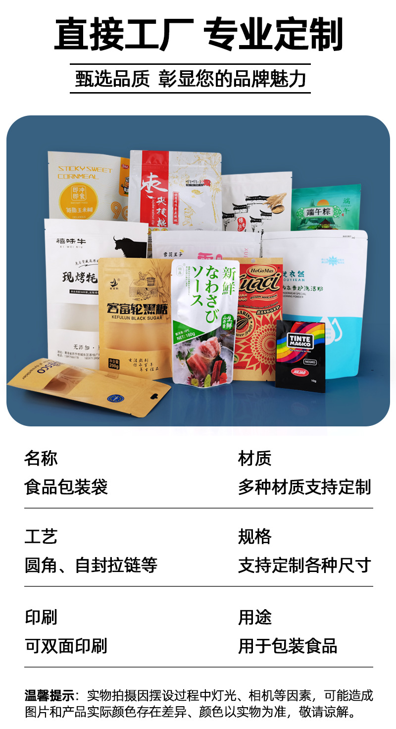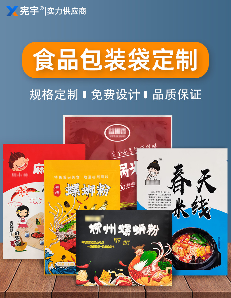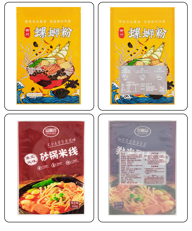 식품 포장 봉투 인쇄 달팽이면과 쌀국수 자립 밀봉 지퍼 백 복합 3 면 밀봉 알루미늄 호일 비닐 봉투