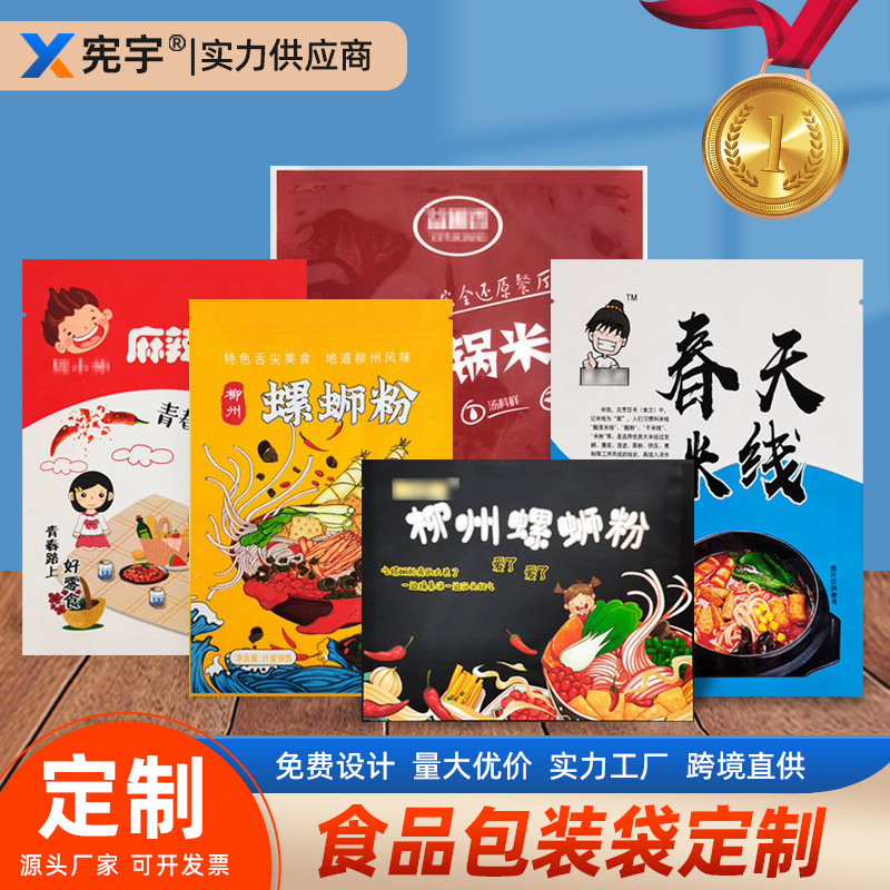 식품 포장 봉투 인쇄 달팽이면과 쌀국수 자립 밀봉 지퍼 백 복합 3 면 밀봉 알루미늄 호일 비닐 봉투스토어 가기