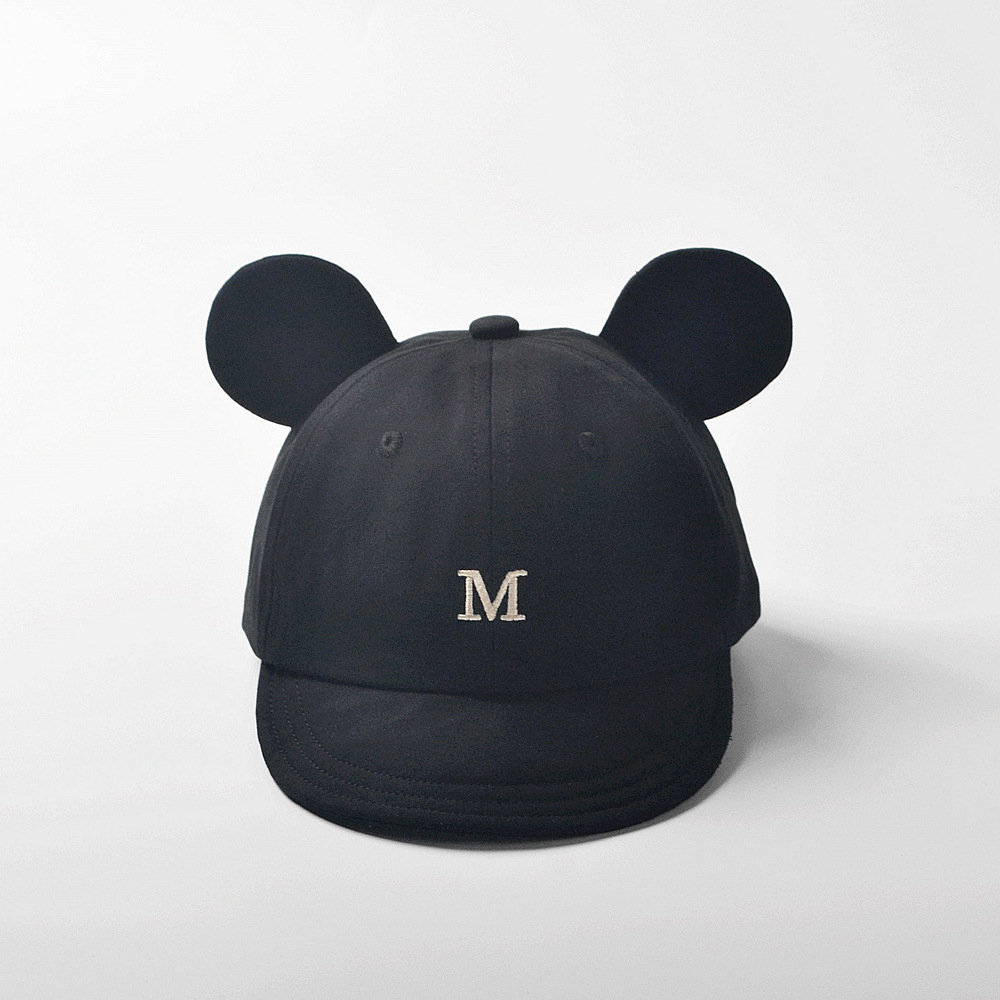 【商品介绍】 特别容易凹造型出效果的一款鸭舌帽,可爱立体大圆耳设计,水灵灵的,帽身前面M字母绣花,让黑色显得没有那么沉闷,整体色调更和谐。后面为魔术贴,可调节帽围大小。喜欢的可以入手了哈。