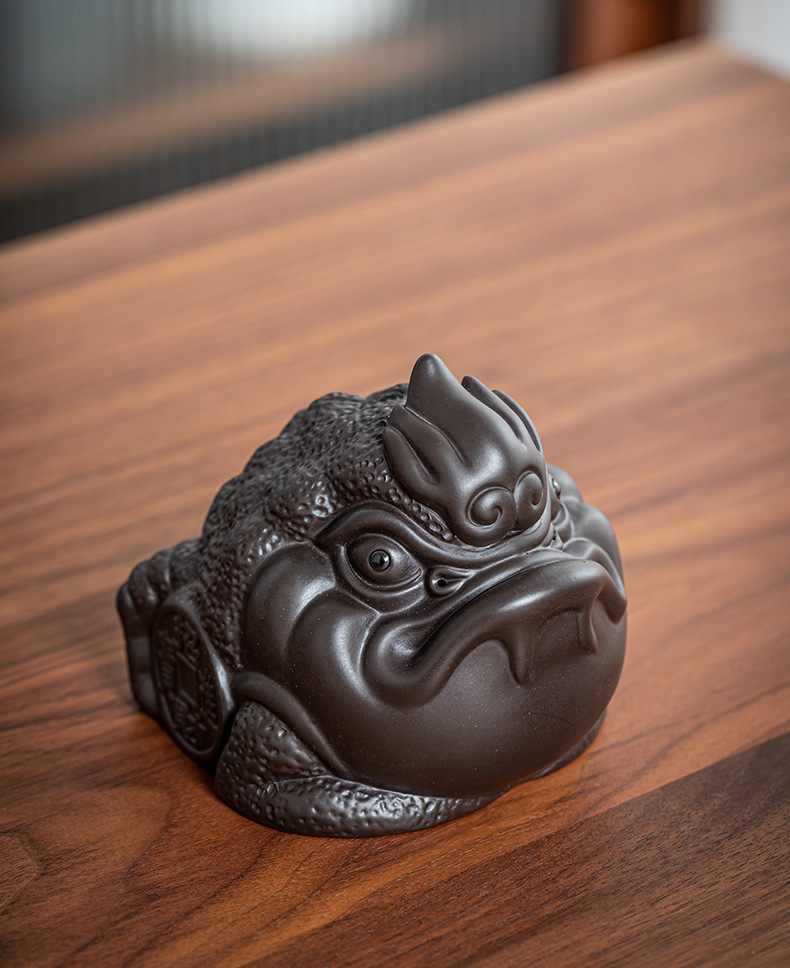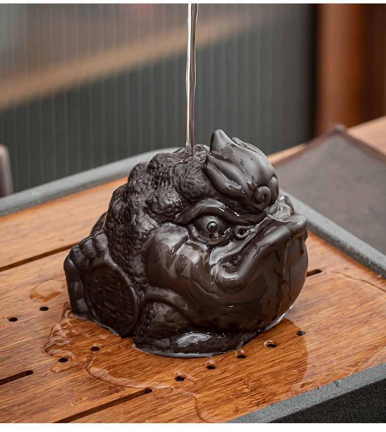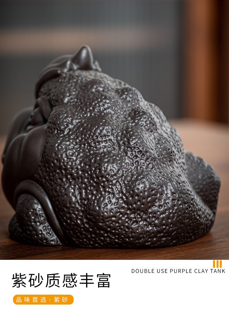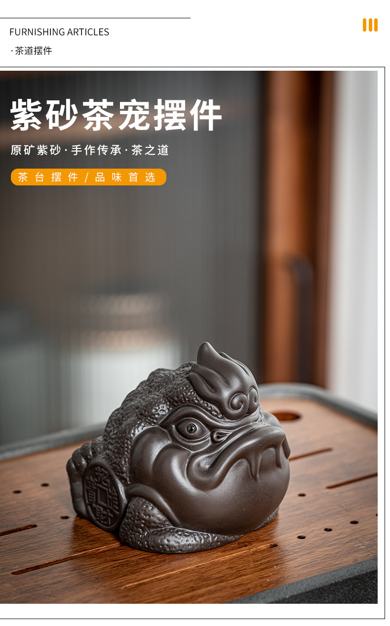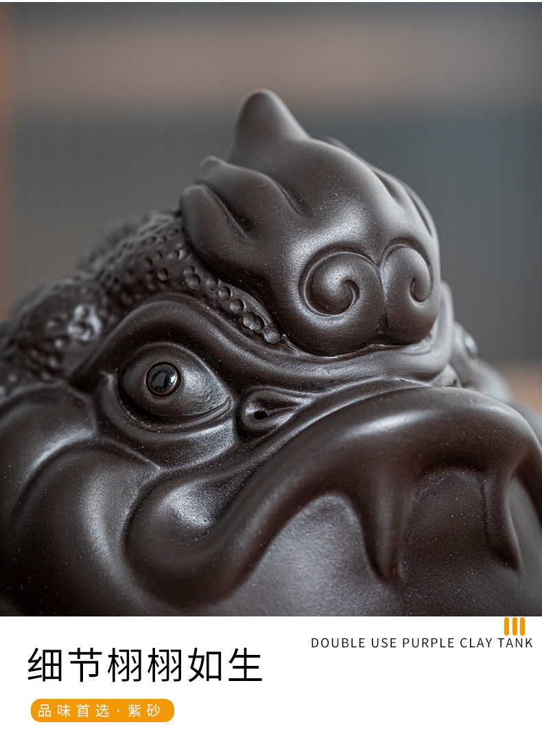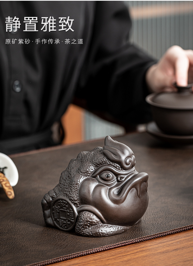 Chenxiang 보라색 모래 차 애완 동물 장식품을 올릴 수 있습니다 차 세트 차 테이블 차 테이블 수제 황금 두꺼비 용감한 다도 부티크 차 놀이 애완 동물