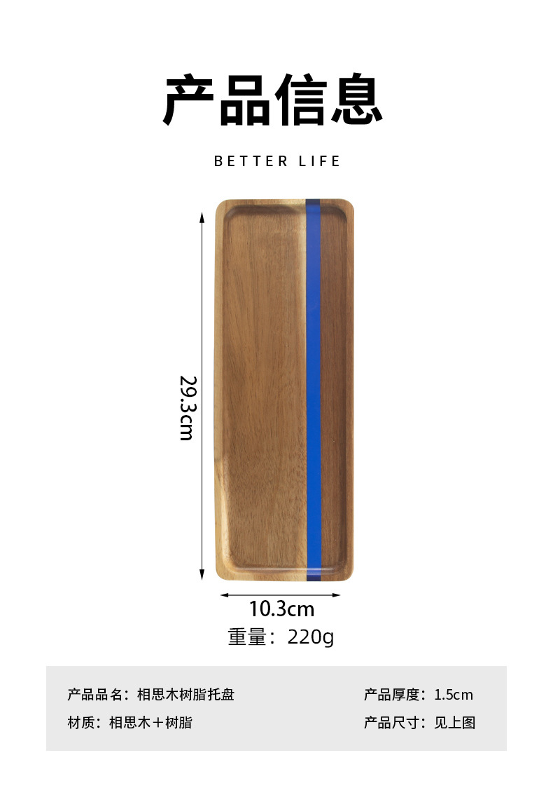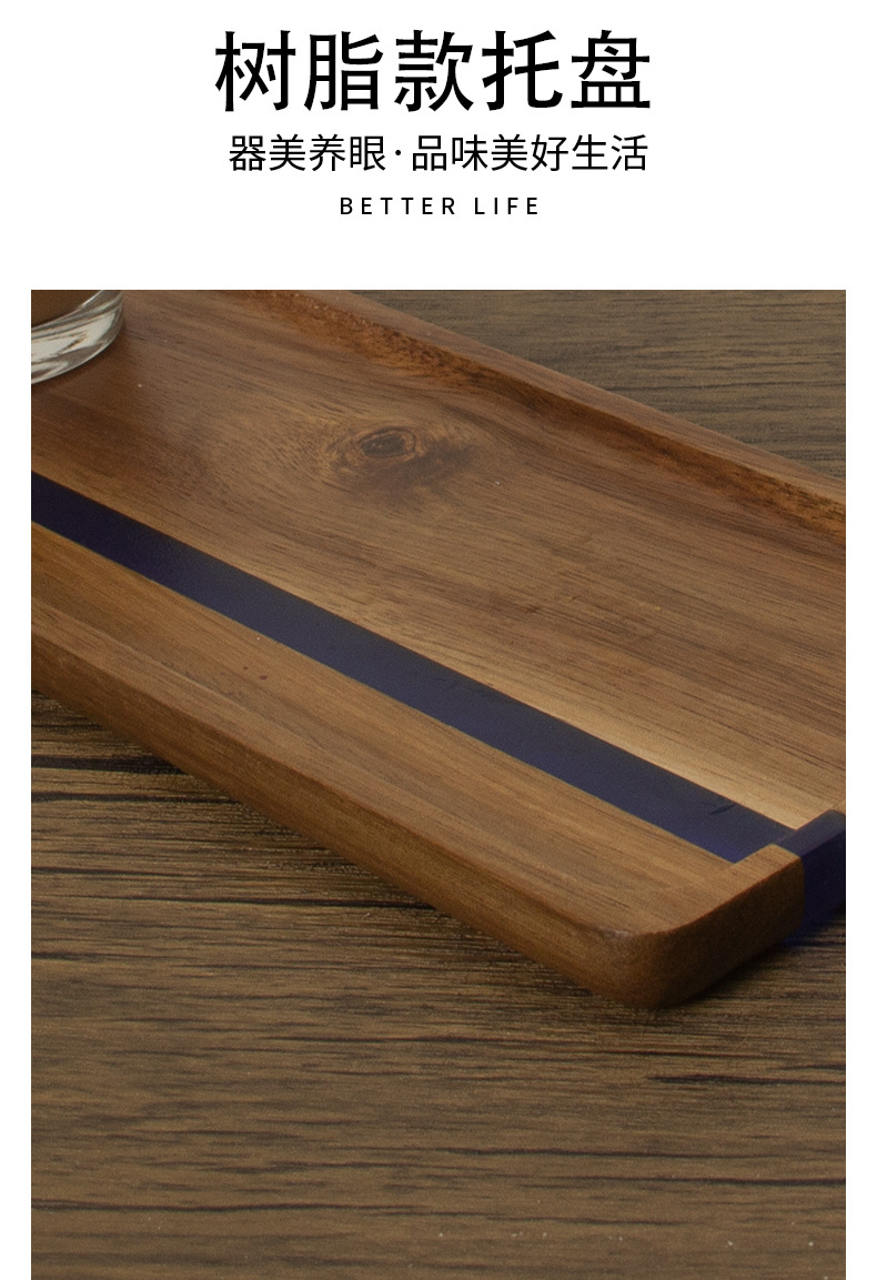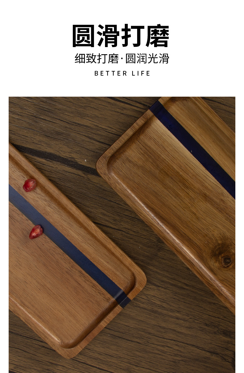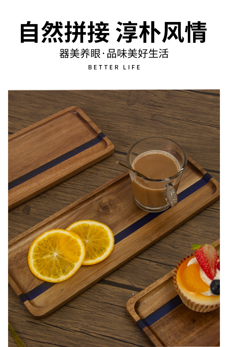 일본식 아카시아 나무 식품 트레이 수지 직사각형 유럽 스타일 티 트레이 나무 주방 빵 접시 과일 접시스토어 가기