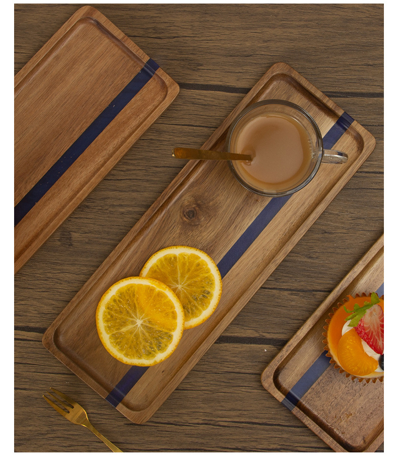 일본식 아카시아 나무 식품 트레이 수지 직사각형 유럽 스타일 티 트레이 나무 주방 빵 접시 과일 접시