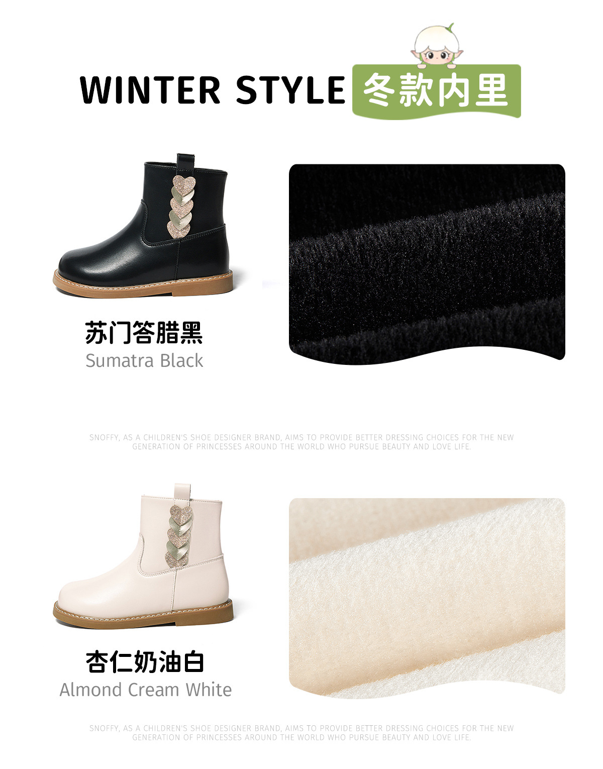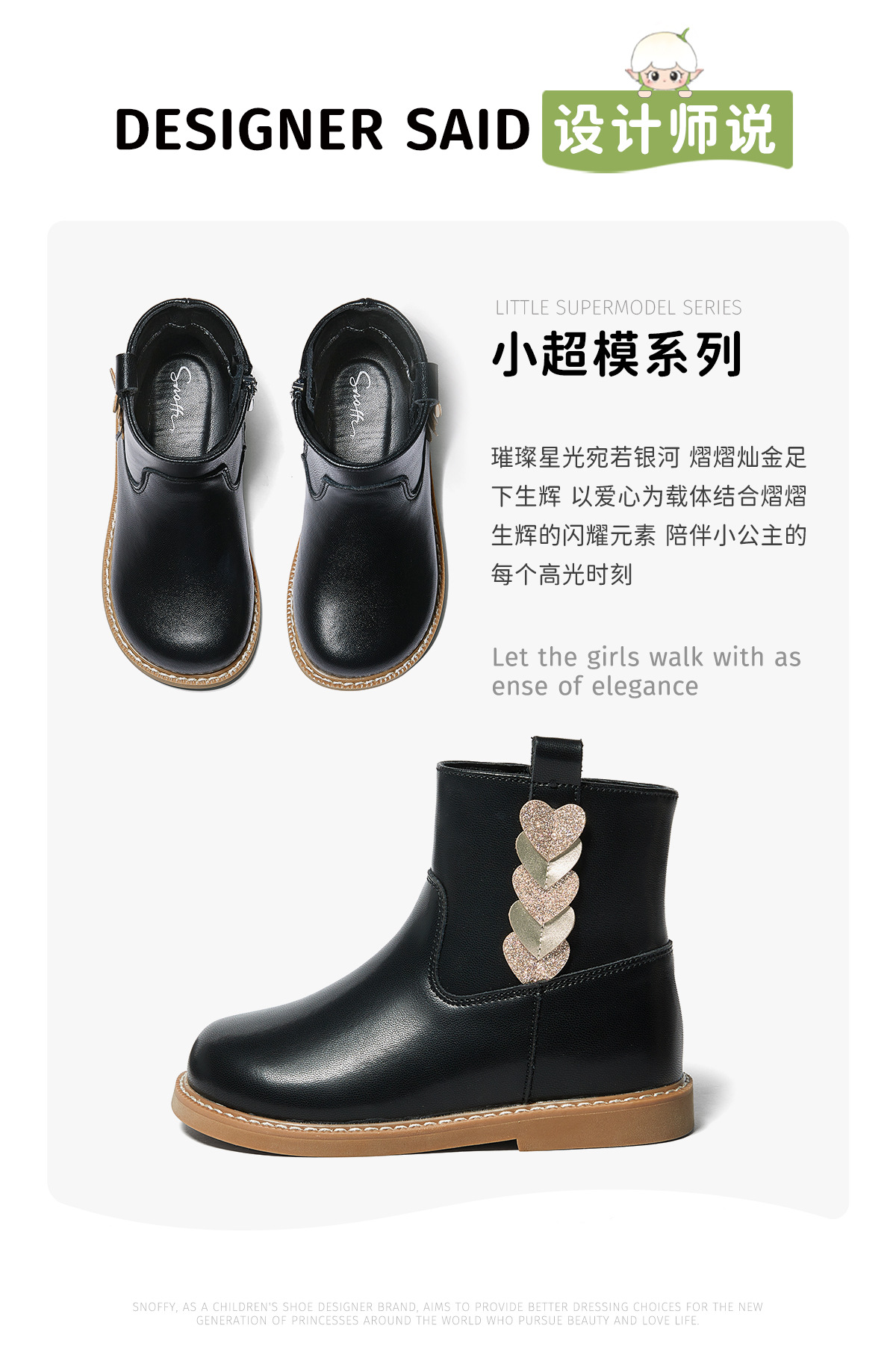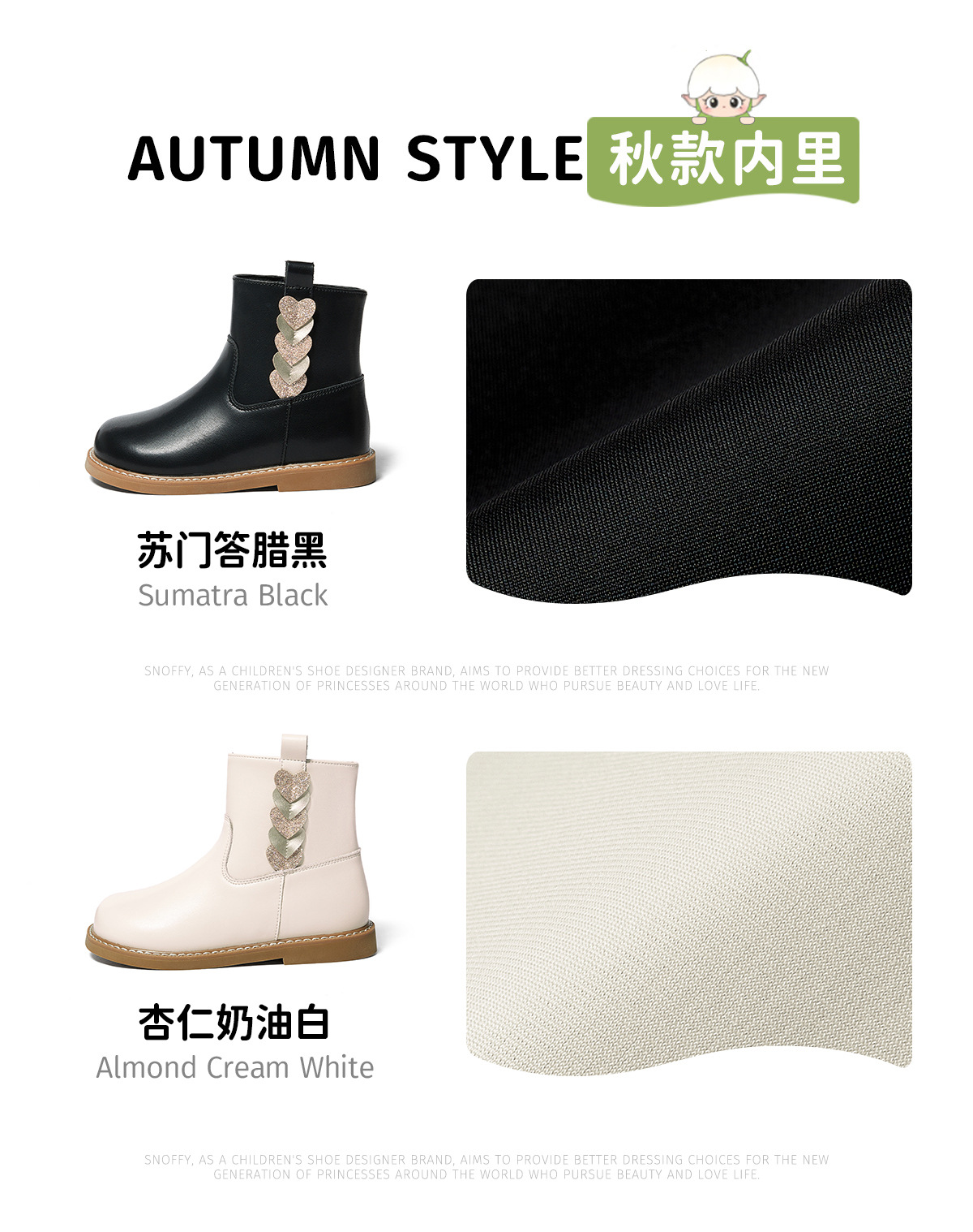 스나피 여아 부츠 천연 가죽 2025 가을 겨울 신상 아동 첼시 패션 숏 가죽 부츠 블랙스토어 가기