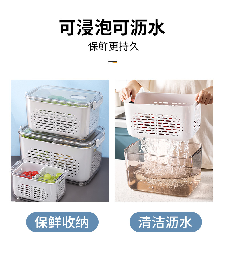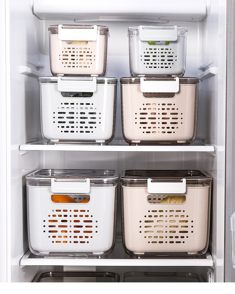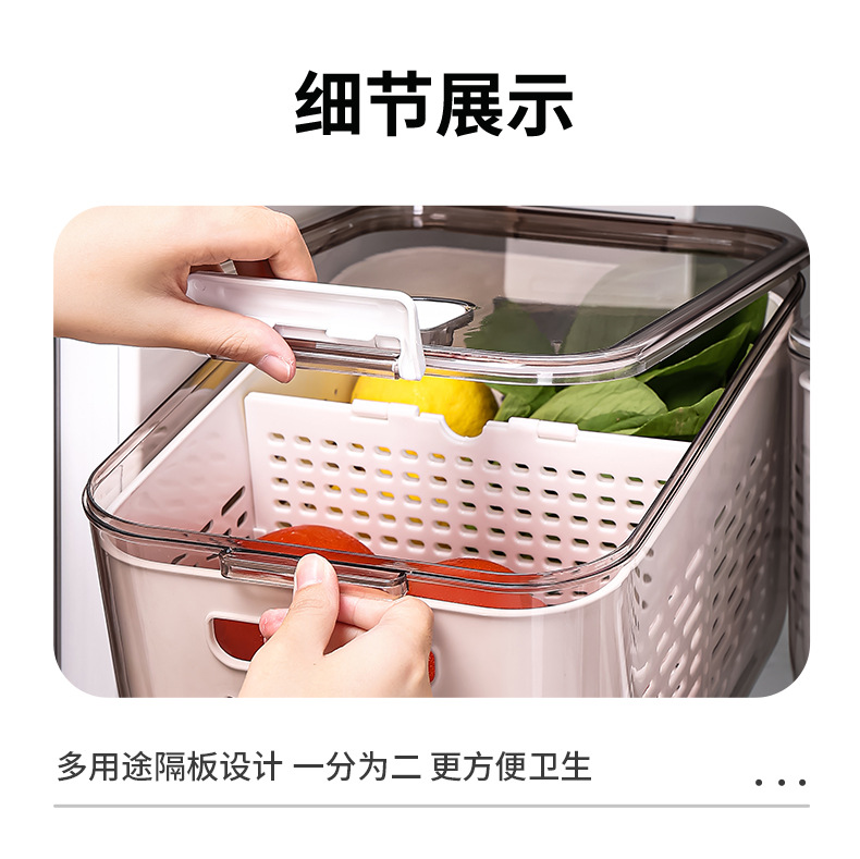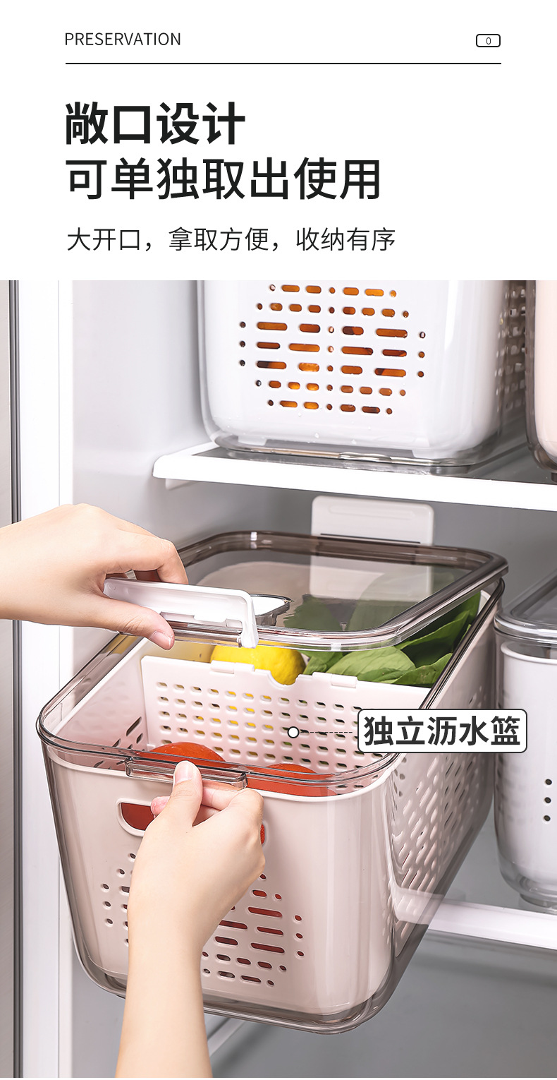 냉장고 보관함 크리 에이 티브 플라스틱 투명 주방 식품 밀봉 보존 상자 과일 및 야채 배수 보관 바구니