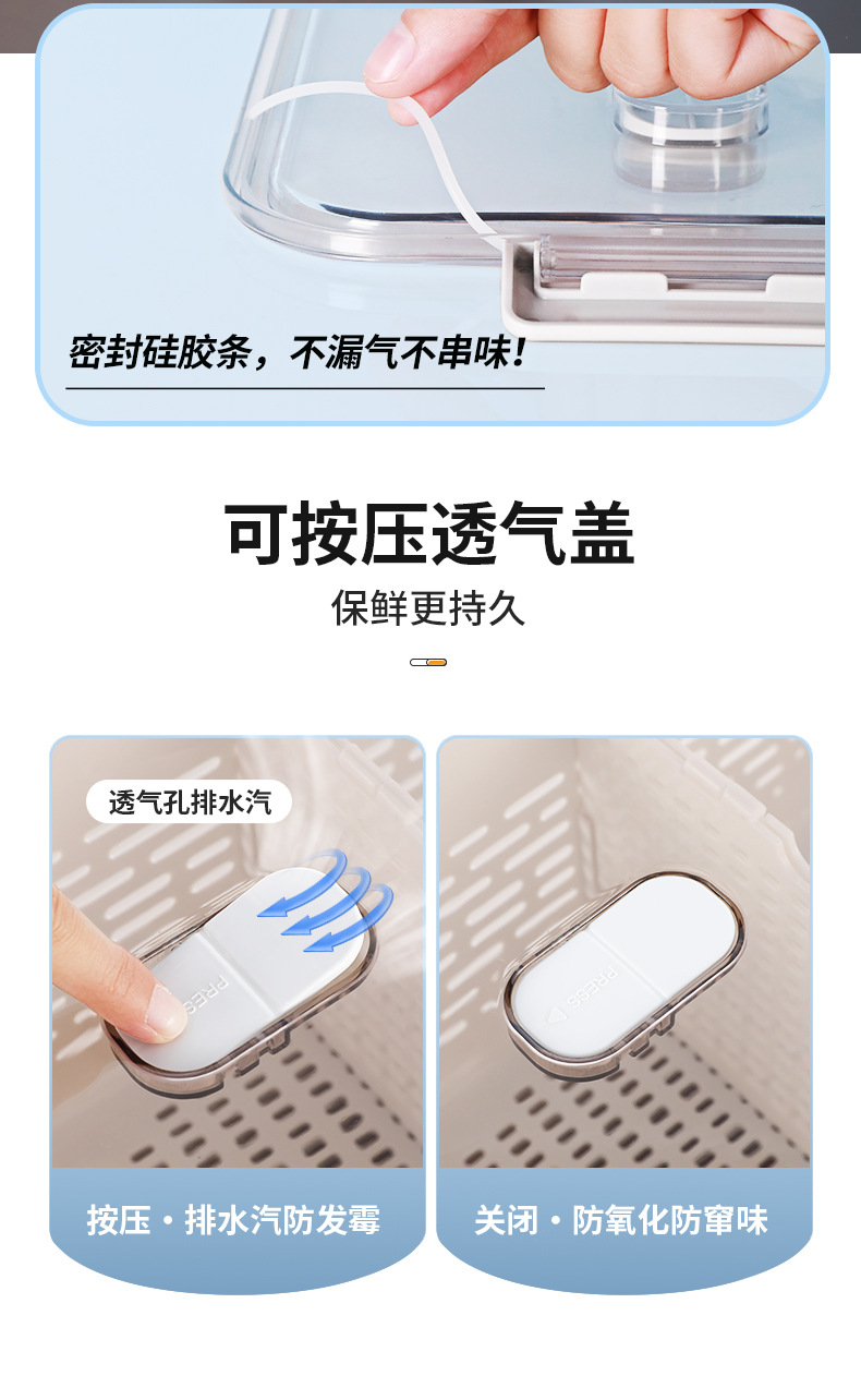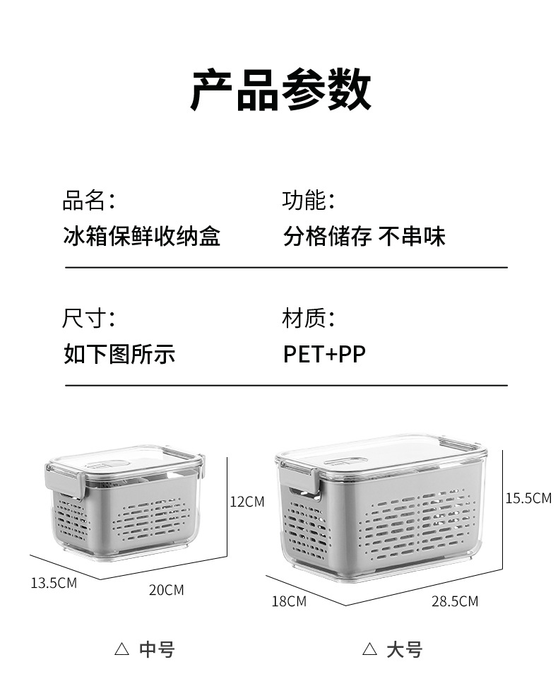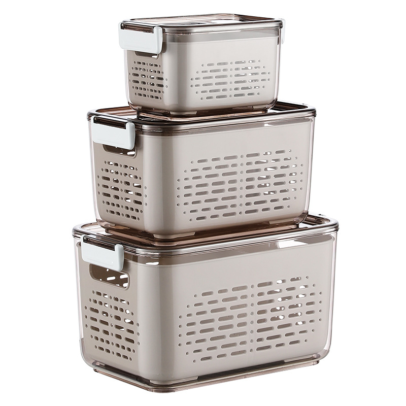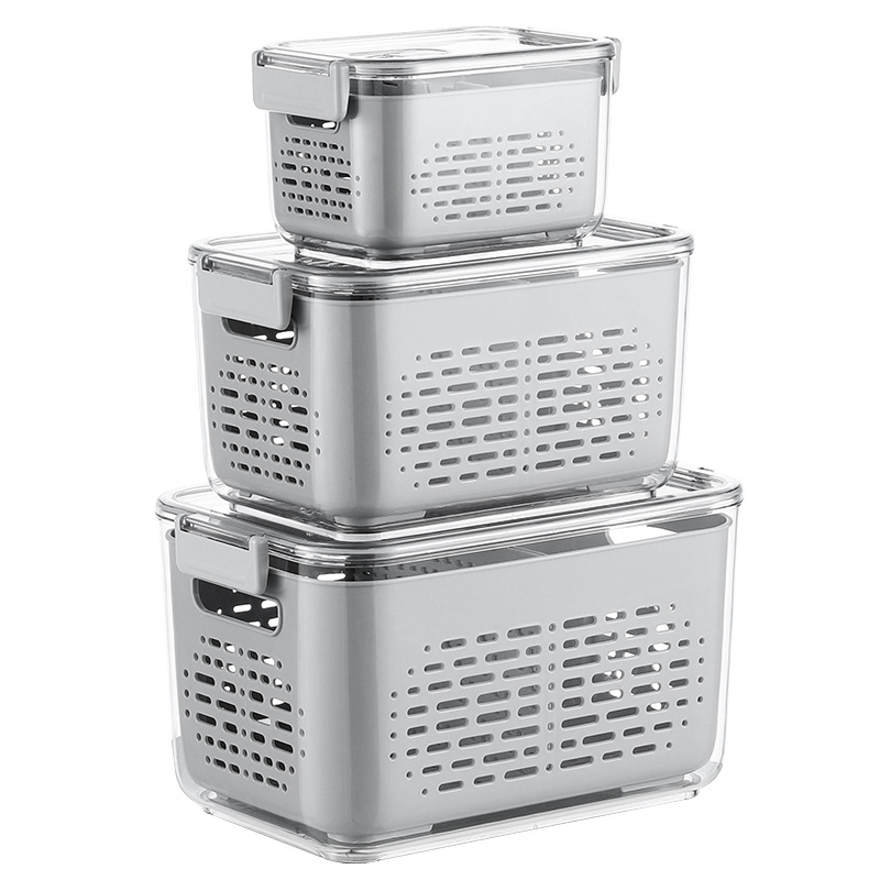 냉장고 보관함 크리 에이 티브 플라스틱 투명 주방 식품 밀봉 보존 상자 과일 및 야채 배수 보관 바구니