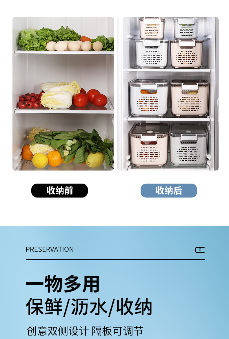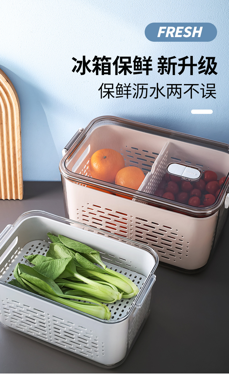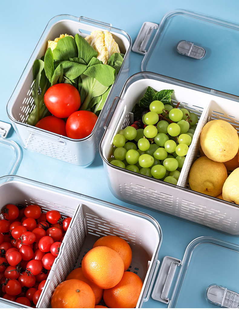 냉장고 보관함 크리 에이 티브 플라스틱 투명 주방 식품 밀봉 보존 상자 과일 및 야채 배수 보관 바구니스토어 가기