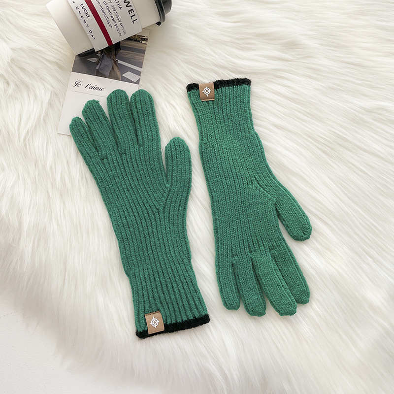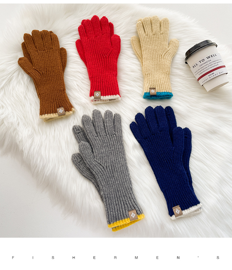 스티칭 스트라이프 울 니트 단색 장갑 가을과 겨울 따뜻한 라이딩을 수집 한 후 손가락 노출 손가락 터치 스크린 라벨스토어 가기