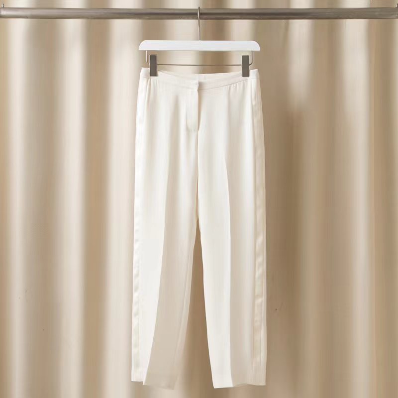 TH 가을 겨울 신상품 Nanyou 여성 바지 삼아세테이트 혼합 패션 대비 색상 스트레이트 바지 캐주얼 바지