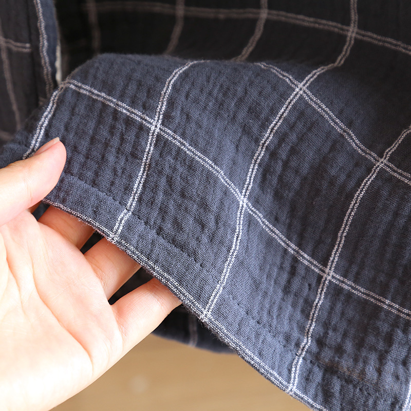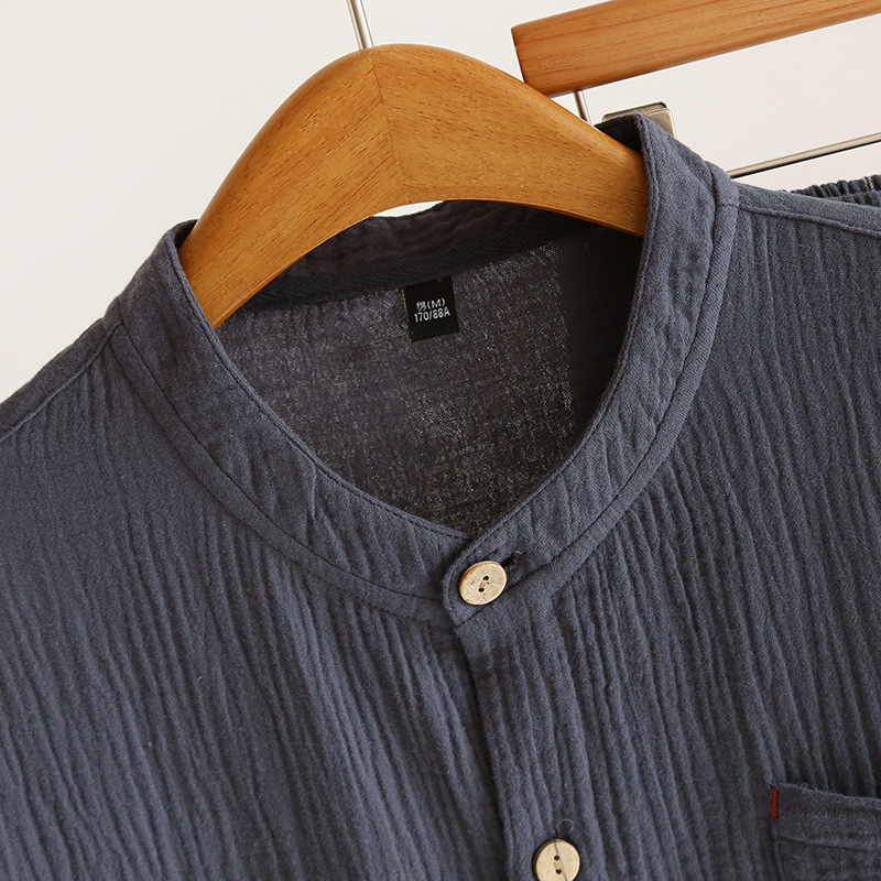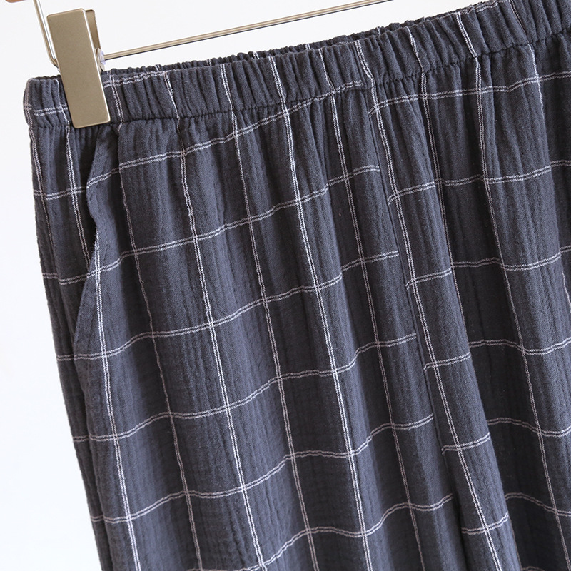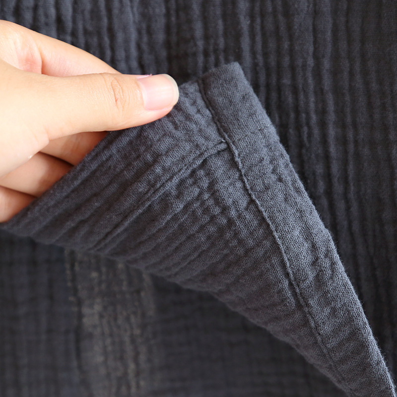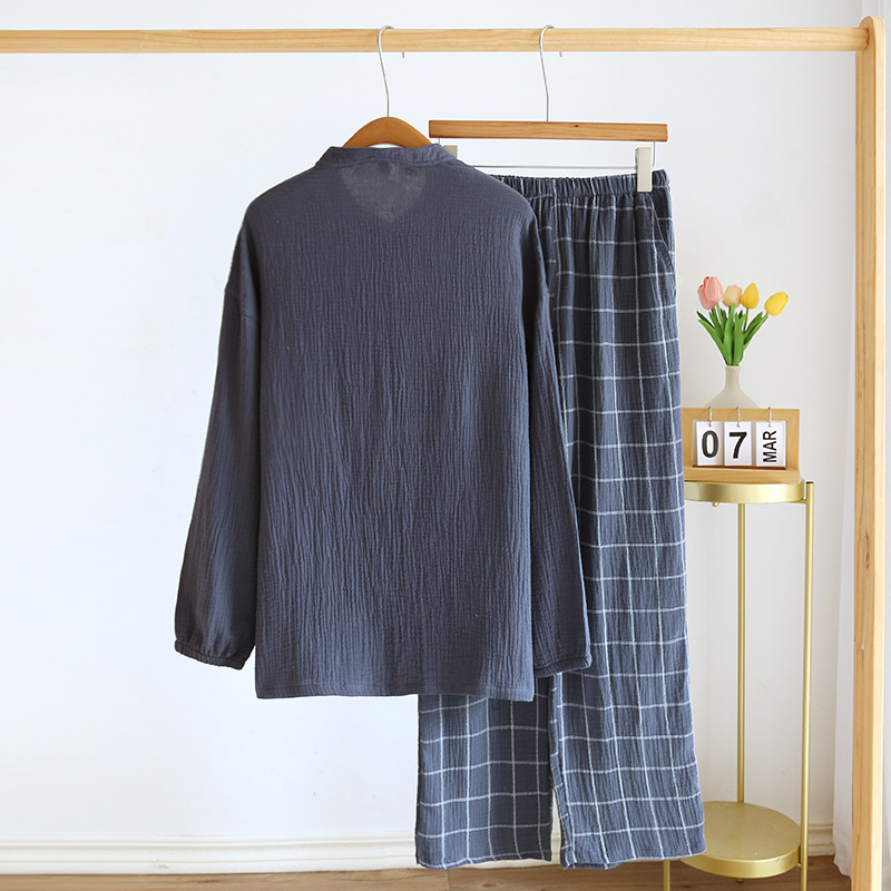 간단한 잠옷 남자의 봄과 가을 여름 면 거즈 더블 레이어 크레이프 긴 소매 가디건 느슨한 플러스 사이즈 가정 옷 세트스토어 가기