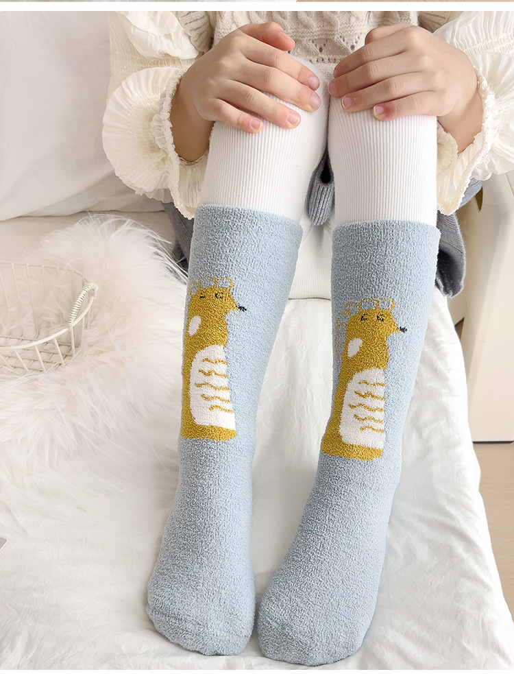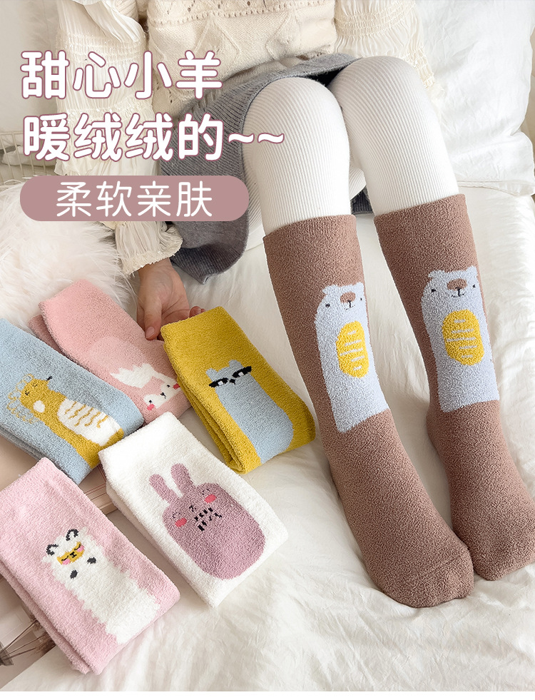 가을과 겨울 아기 양말 아기 두꺼운 긴 튜브 귀여운 만화 신생아 슈퍼 귀여운 높은 튜브 기모 따뜻한 어린이 양말스토어 가기