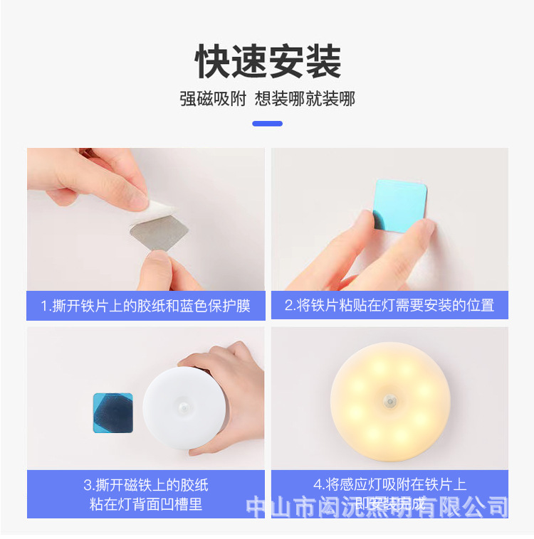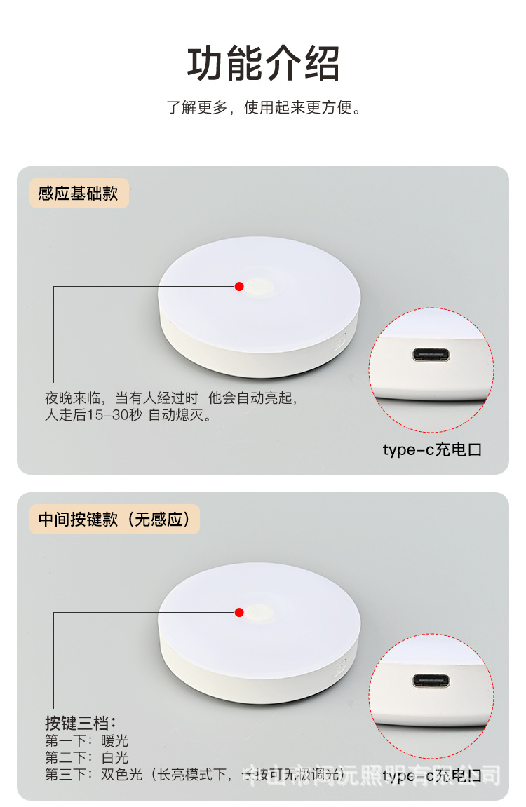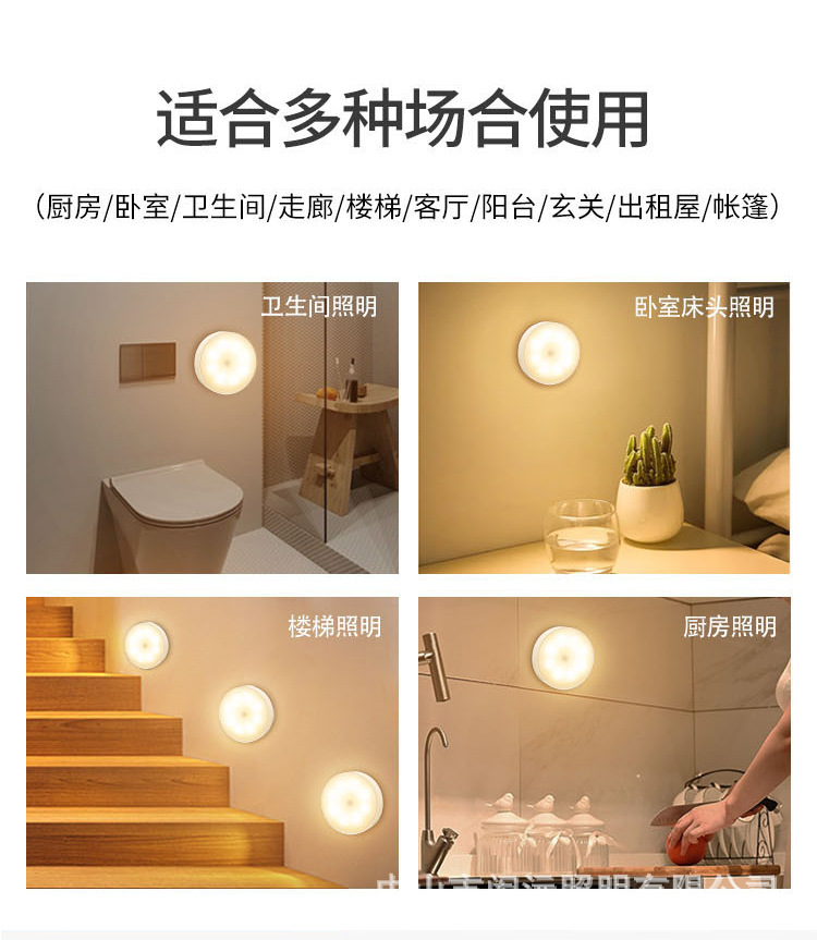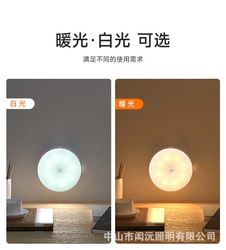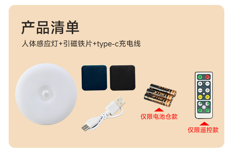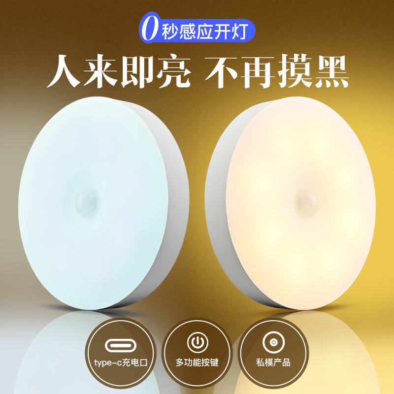 크로스 보더 새로운 Type-C 충전 포트 라운드 인체 유도 램프 지능형 자기 원격 제어 usb 야간 조명 도매스토어 가기
