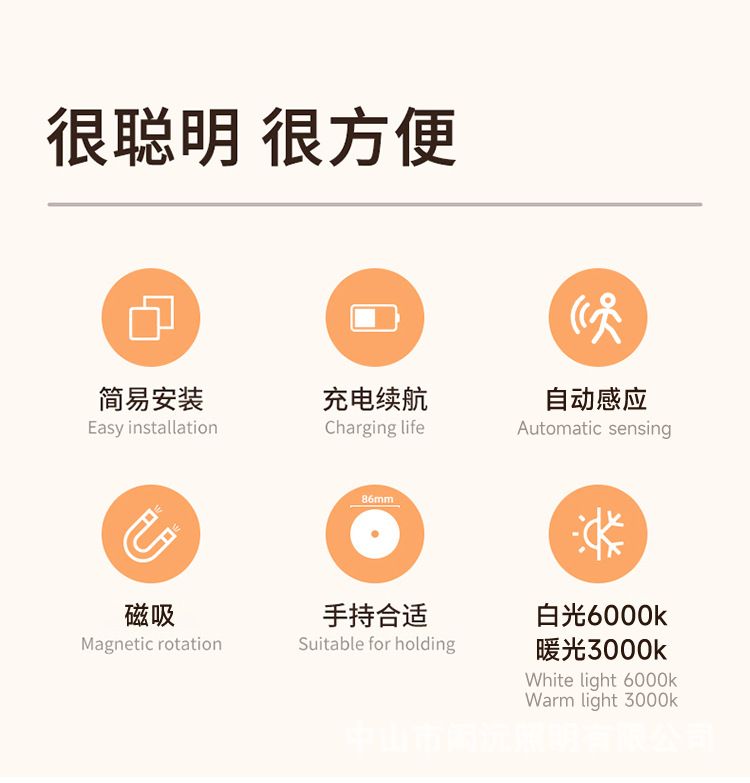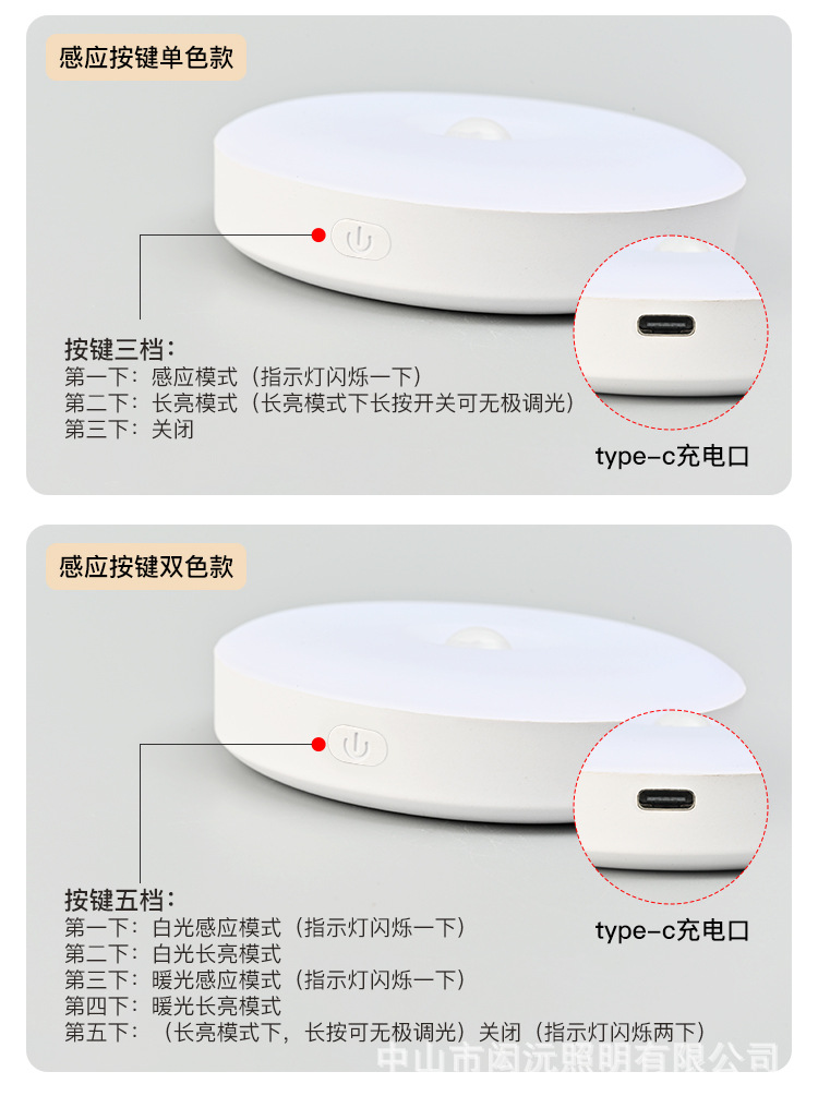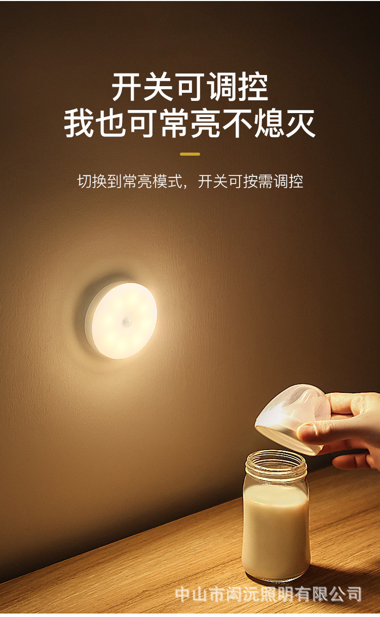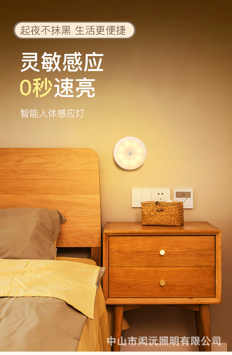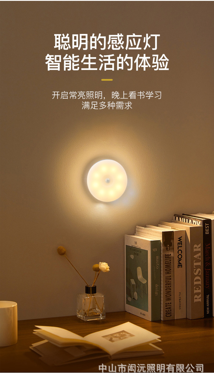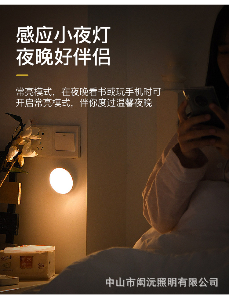 크로스 보더 새로운 Type-C 충전 포트 라운드 인체 유도 램프 지능형 자기 원격 제어 usb 야간 조명 도매