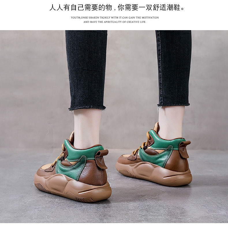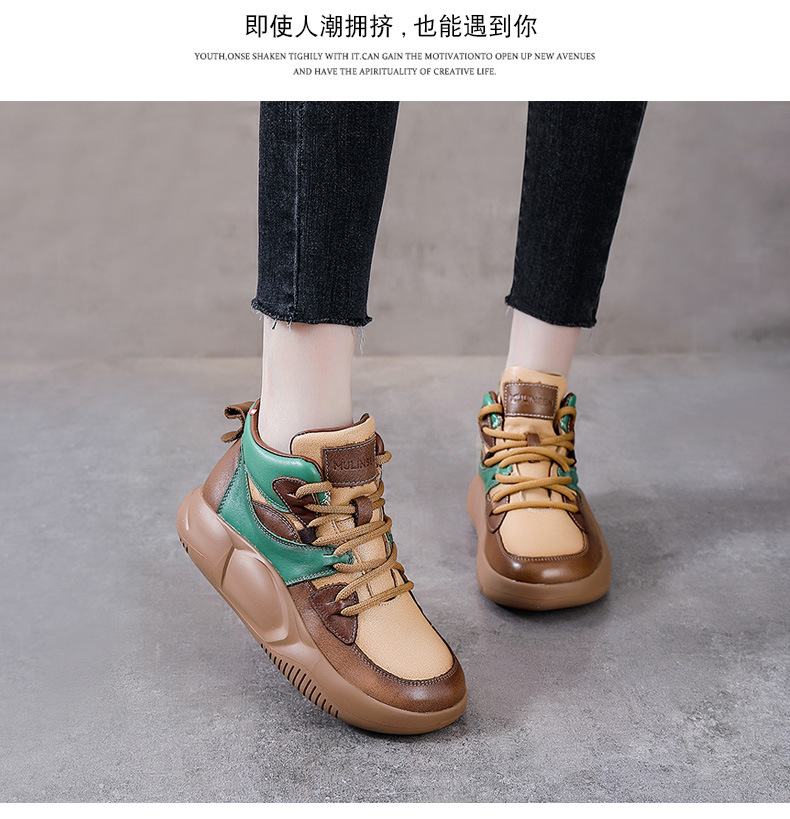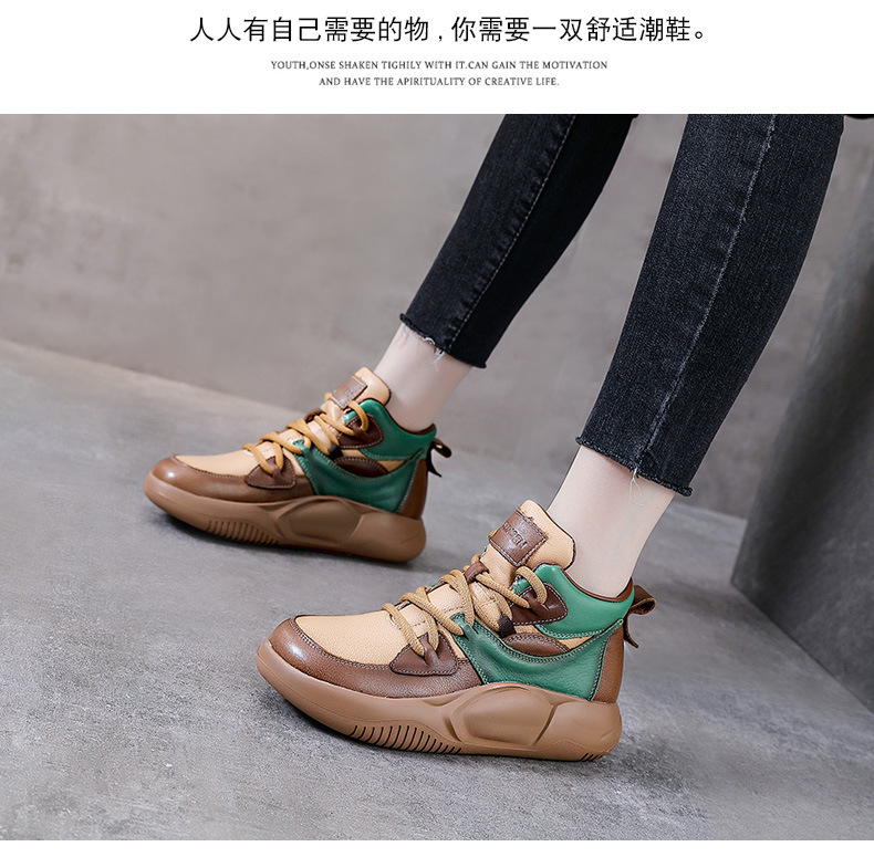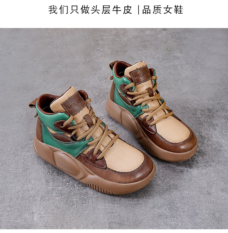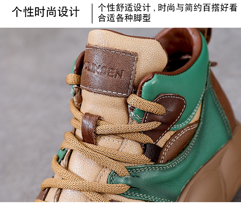 첫 번째 레이어 소가죽 짧은 부츠 새로운 캐주얼 토레 신발 여성용 마틴 부츠 정품 가죽 캐주얼 컬러 차단 하이탑 신발 가을과 겨울 싱글 레이어 부츠