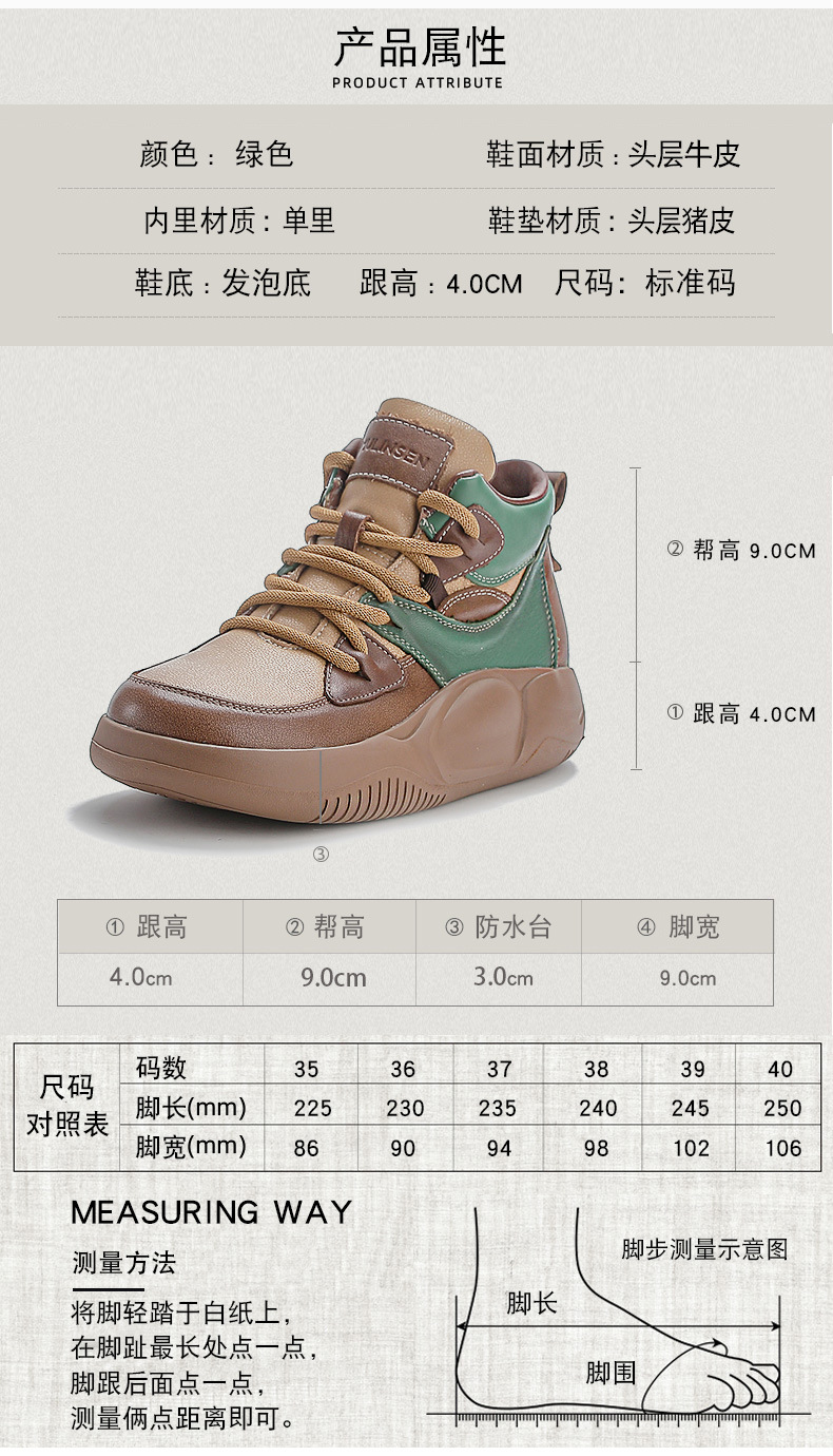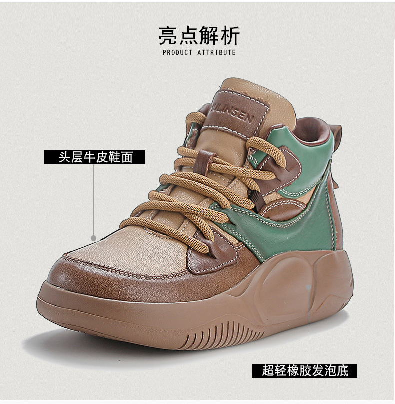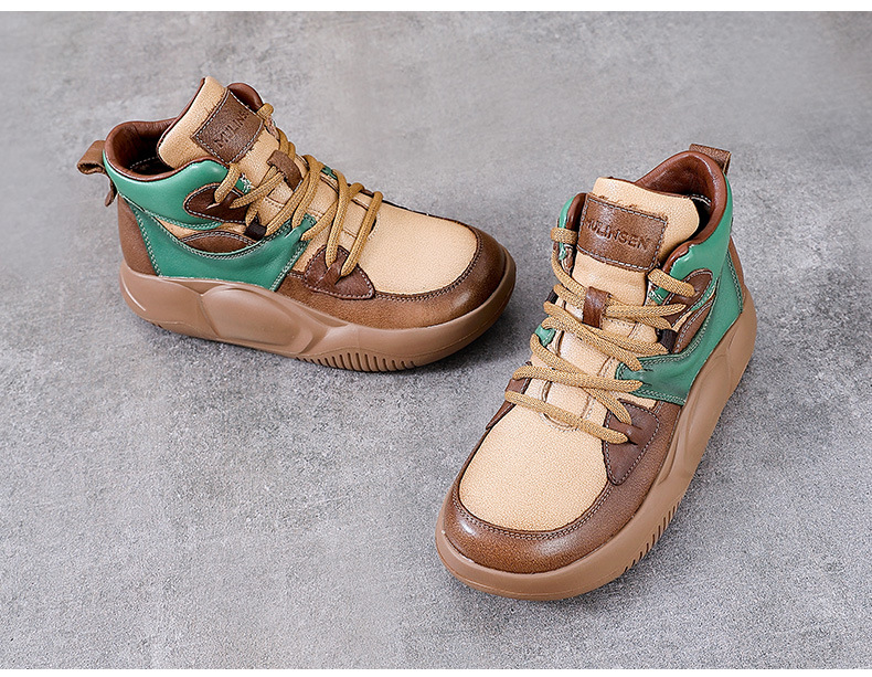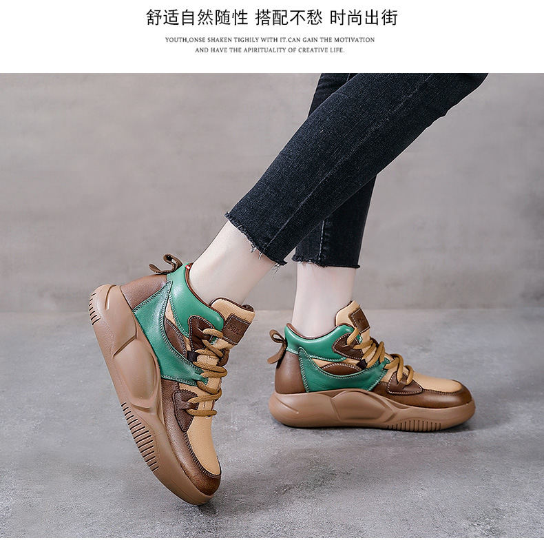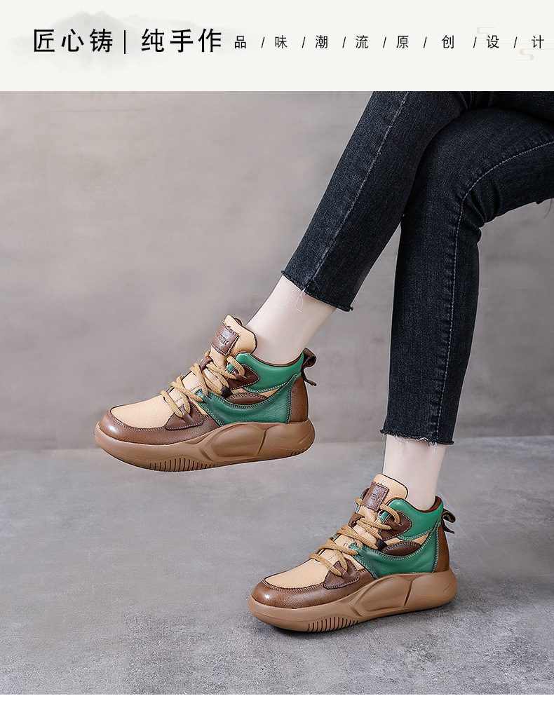 첫 번째 레이어 소가죽 짧은 부츠 새로운 캐주얼 토레 신발 여성용 마틴 부츠 정품 가죽 캐주얼 컬러 차단 하이탑 신발 가을과 겨울 싱글 레이어 부츠