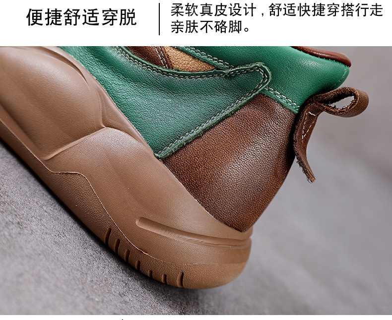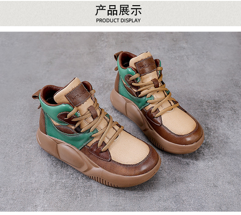첫 번째 레이어 소가죽 짧은 부츠 새로운 캐주얼 토레 신발 여성용 마틴 부츠 정품 가죽 캐주얼 컬러 차단 하이탑 신발 가을과 겨울 싱글 레이어 부츠스토어 가기
