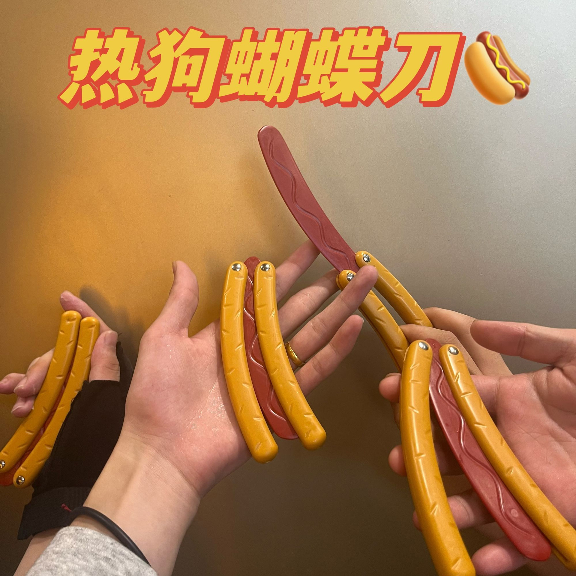 热狗蝴蝶刀解压玩具热狗麦门玩具甩刀训练蝴蝶刀平替塑料的安全