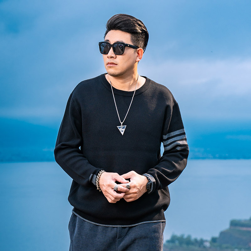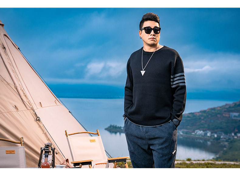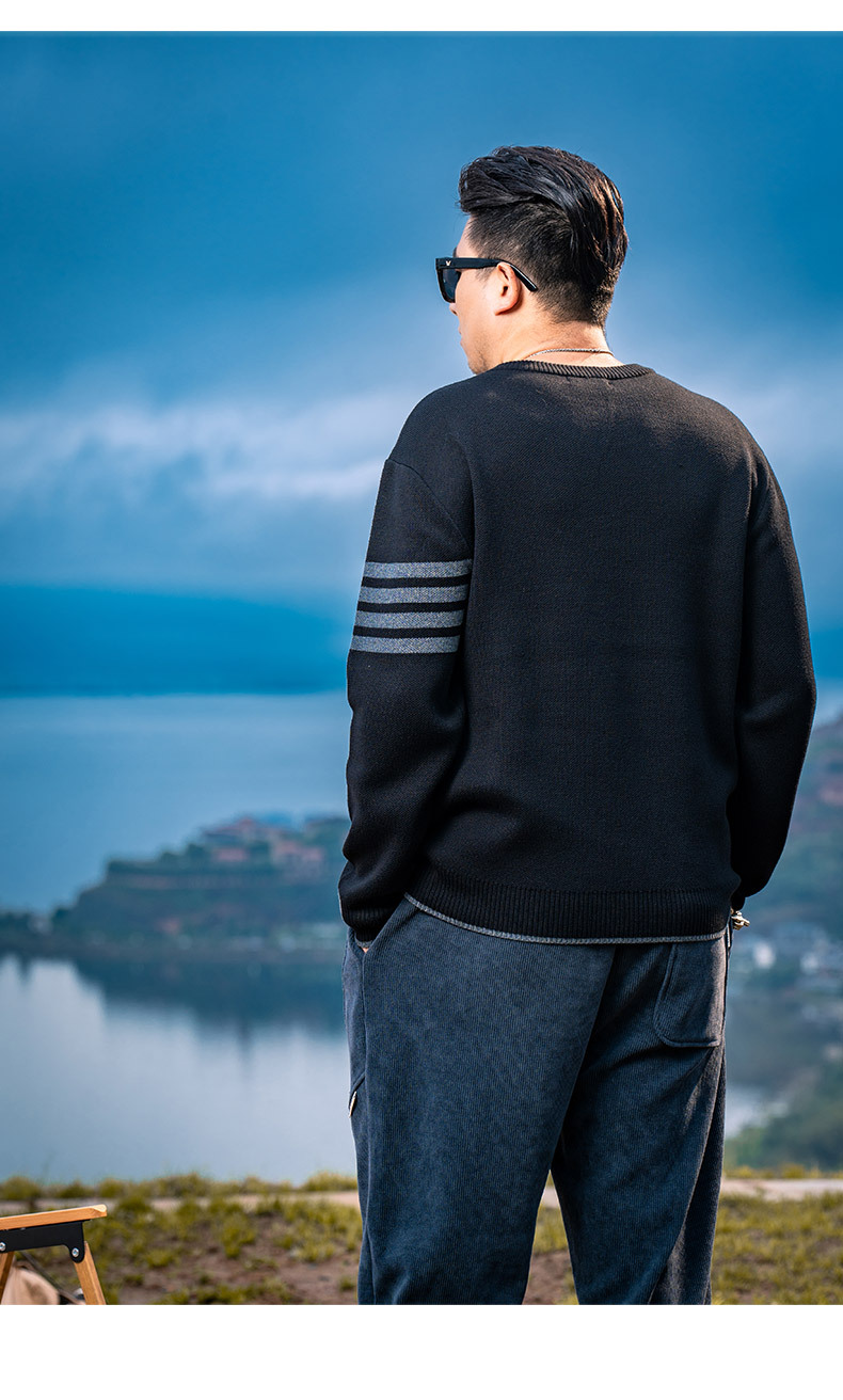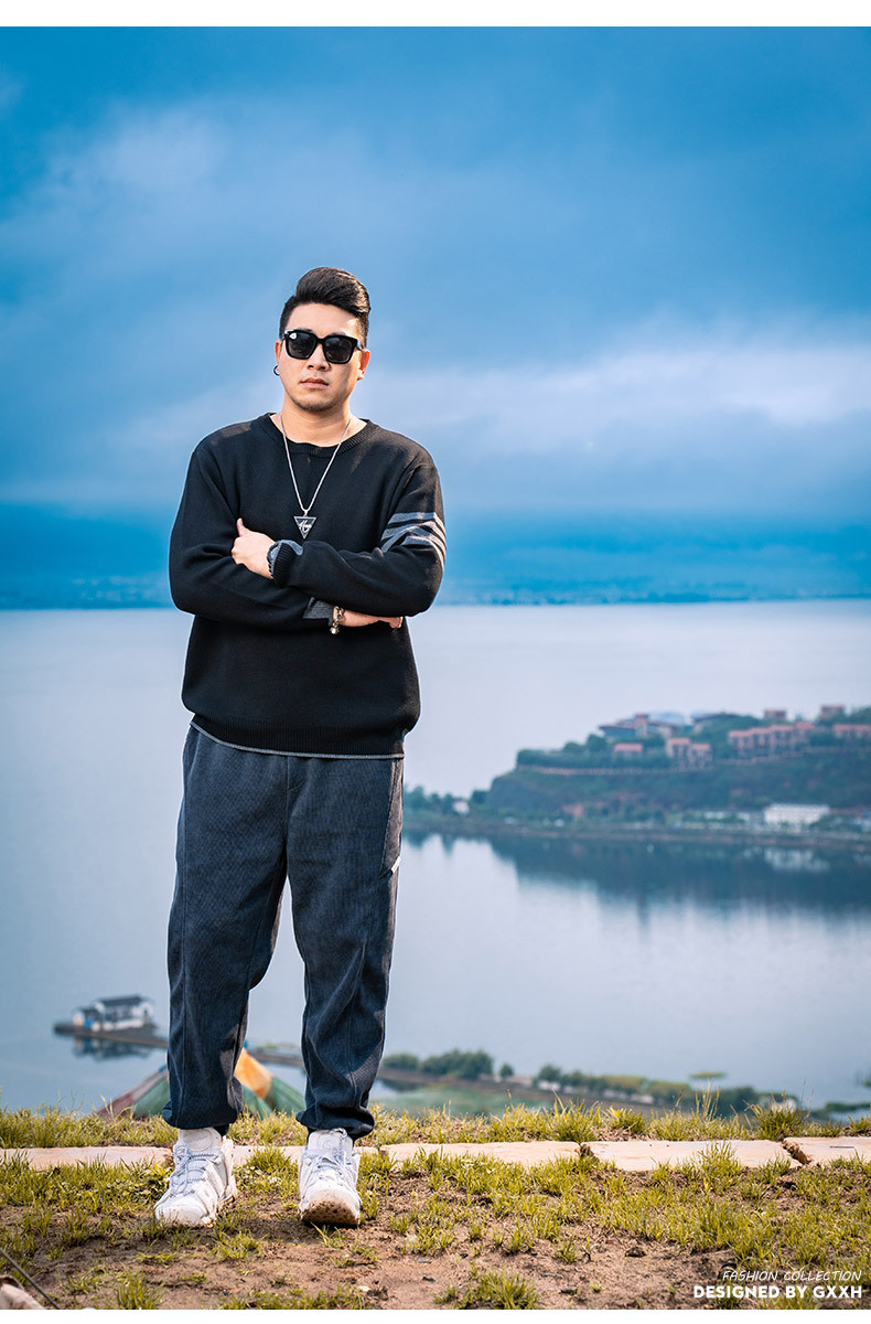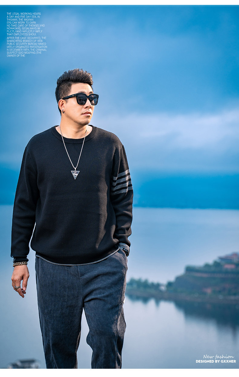 트렌디 브랜드 플러스 사이즈 남성 2023 가을과 겨울 미국 스웨터 남성 둥근 목 풀오버 느슨한 스웨터 탑