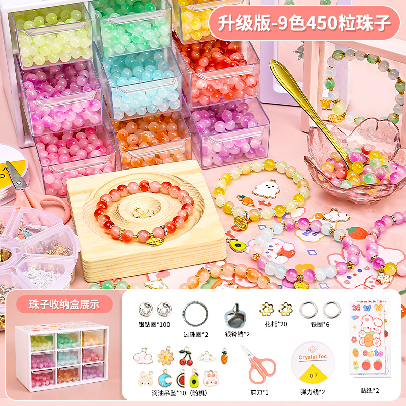 • 유리 팔찌 [9 색 900 구슬] 보관 상자 + 도구 키트 + 팔찌 펜던트