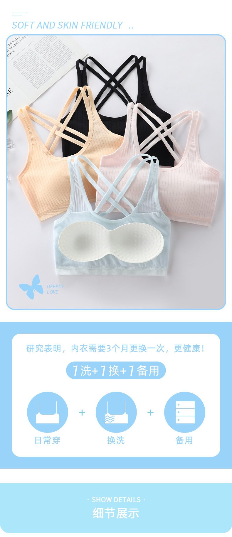 여름 얇은 중학생 여아 속옷 면 통기성 사춘기 스포츠 브라 2 ~ 3 단계