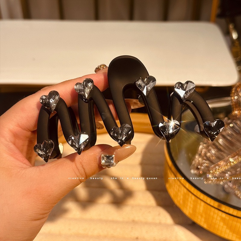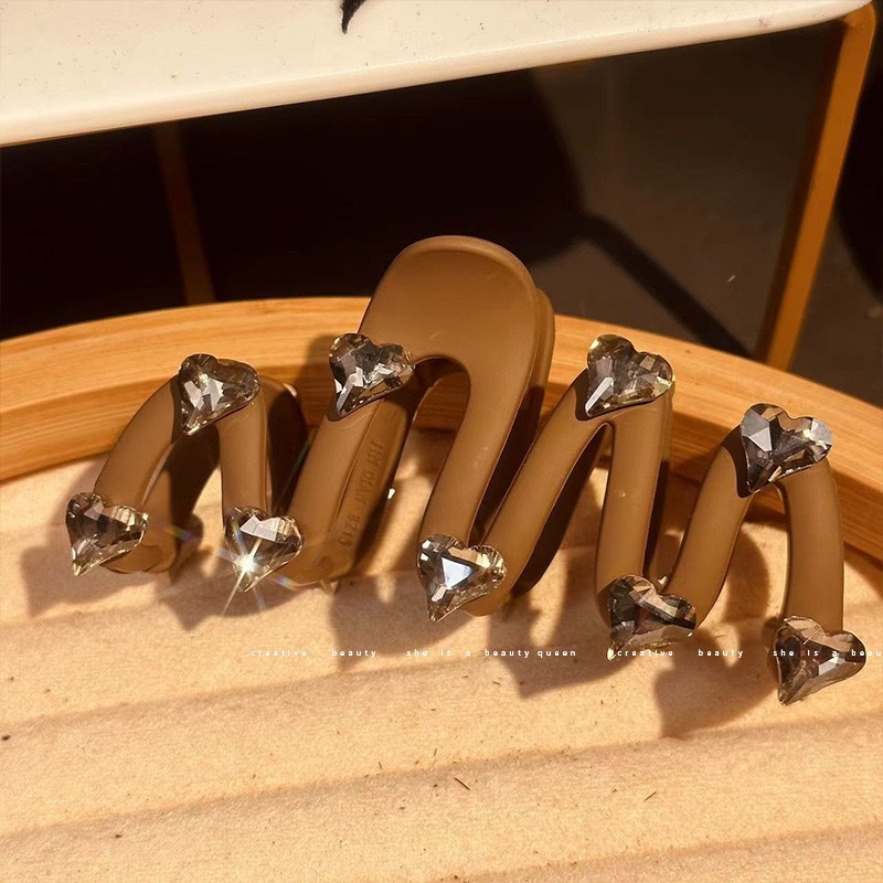 다크 브라운 라인 석 사랑 잡아 클립 여자의 머리 머리 볼륨 멀티 플레이트 머리핀 고급 감각 대형 상어 클립 모자 머리핀