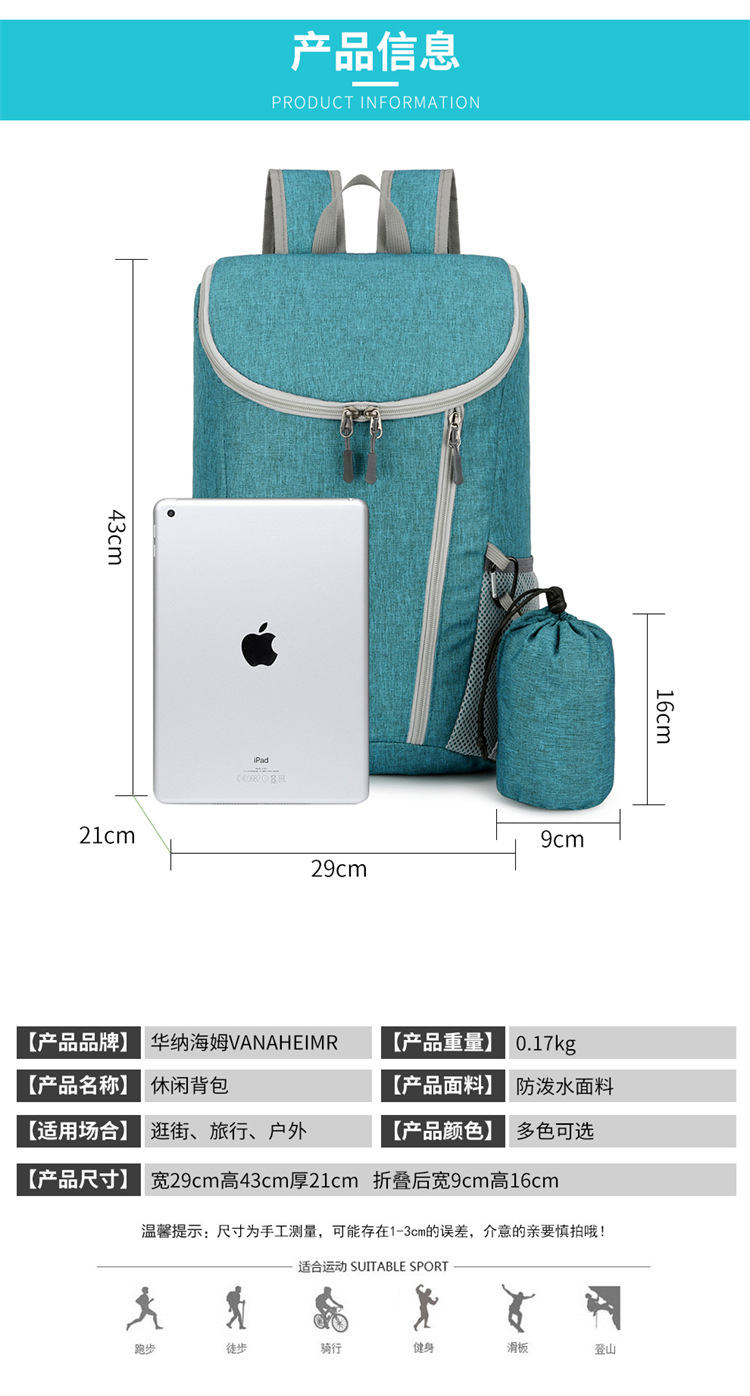 야외 접이식 배낭 캐주얼 보관 가방 아마존 대외 무역 남성용 배낭 대용량 캐주얼 스포츠 더블 백