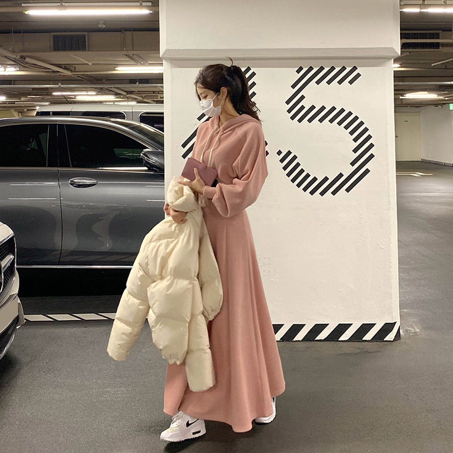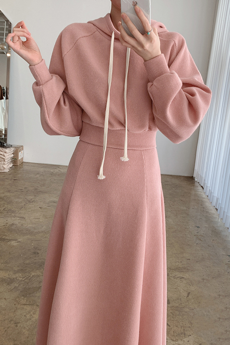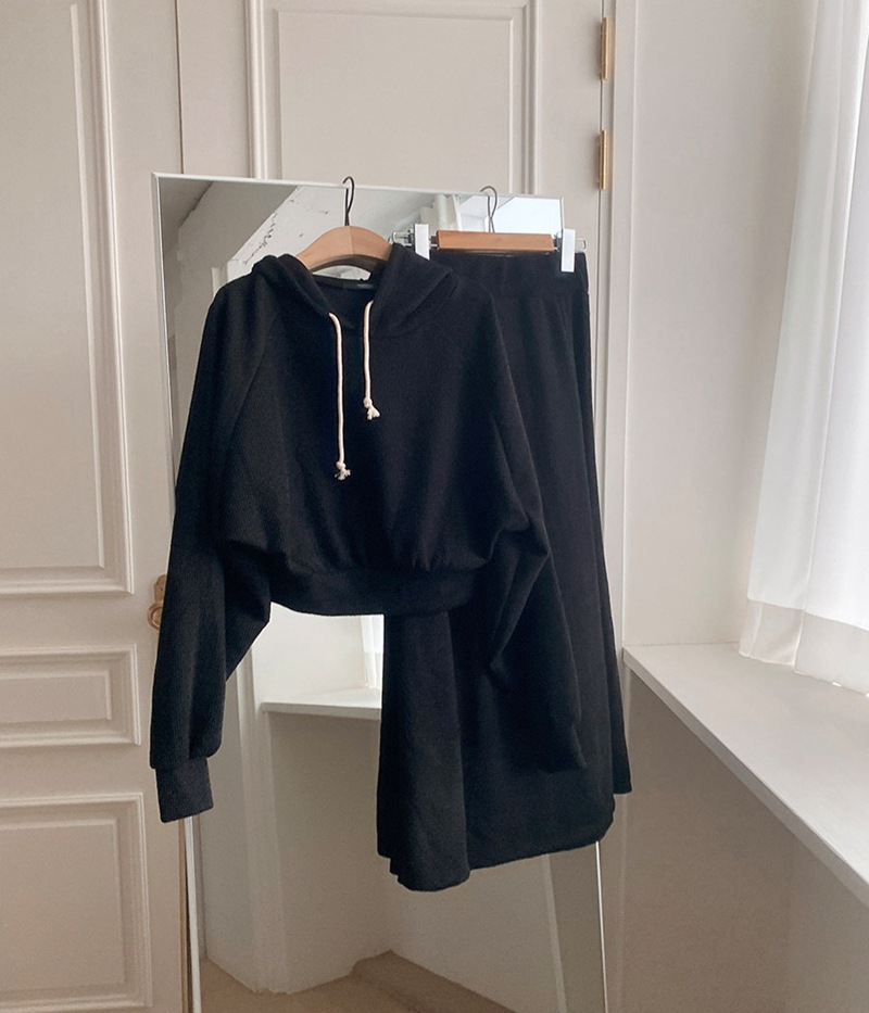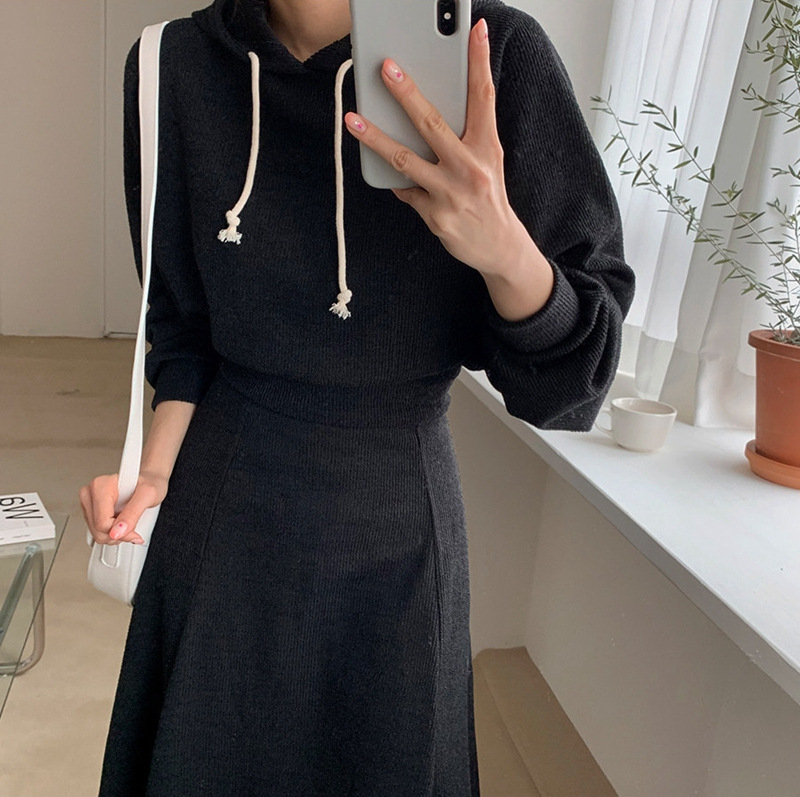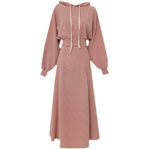 가벼운 성숙한 캐주얼 스포츠 세트 여성의 가을과 겨울 새로운 후드 스웻셔츠 하이 웨이스트 A-라인 스커트 패션 투피스 세트스토어 가기